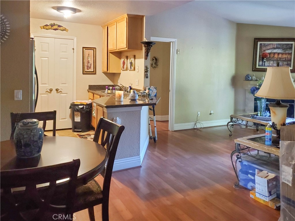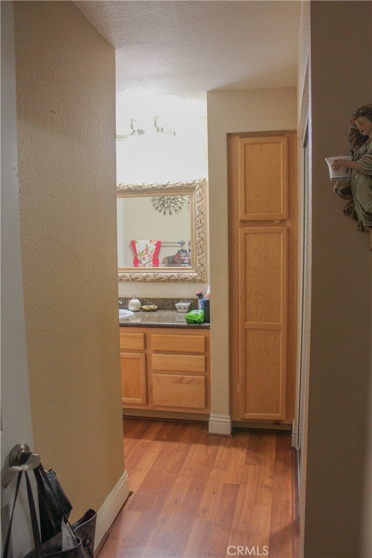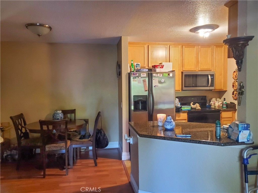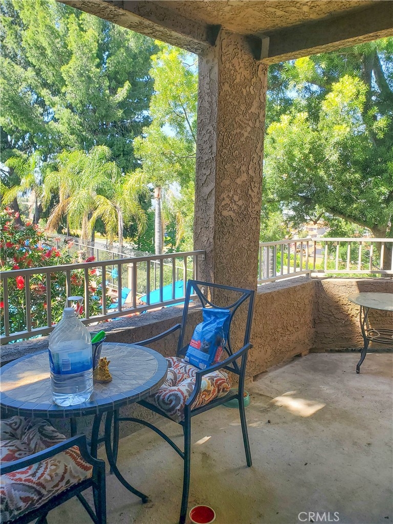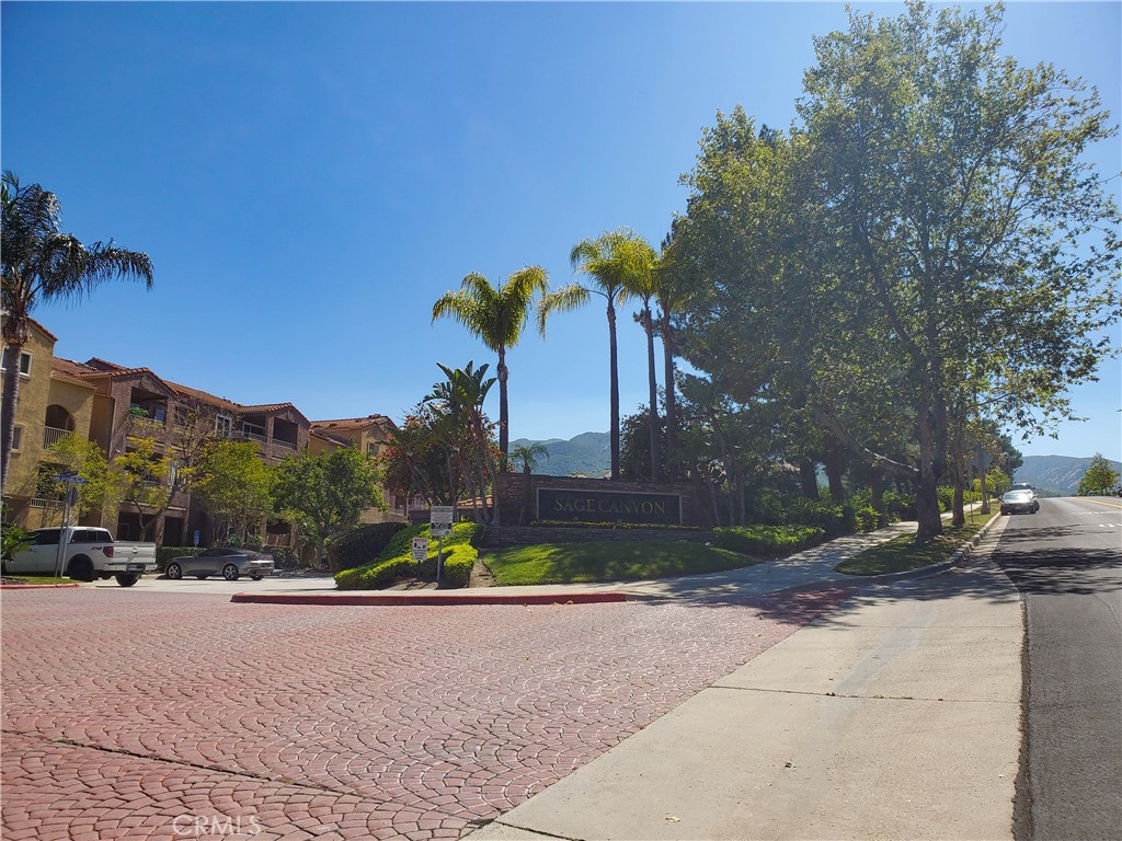 Welcome to Sage Canyon! Here you will find home in this 2 bedroom 2 bathroom private upper level unit. Seamless transitions from dining/kitchen area to living room thanks to the open concept layout make it cozy and a great hosting atmosphere. Tile flooring entry, kitchen and bathrooms are complemented with warm wood laminate flooring in bedrooms, dining and living room. Kitchen includes wood cabinetry, granite counters, breakfast bar, newer range, brand new dishwasher and microwave. Large pantry/laundry room can accommodate full size washer/dryer. Master bedroom with large closet space and ensuite bathroom. Long patio balcony has access from living room and secondary bedroom sliding door. This serene community also caters to the active lifestyle with gym, pool, spa, clubhouse, BBQ, volleyball and basketball court. There are hiking trails nearby as well for the outdoor enthusiast! 1 car garage, 1 carport plus an additional reserved spot all near the building are an added convenience. The community's ideal location offers nearby shopping and dining plus easy access to the 91 and 15fwys. Welcome home!