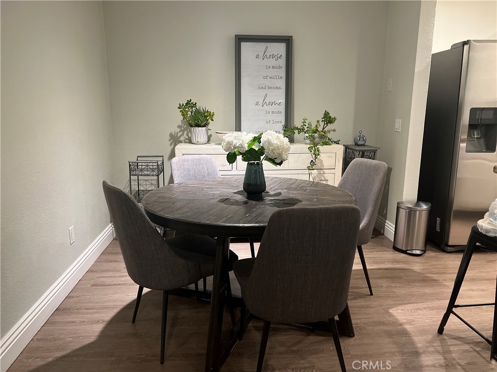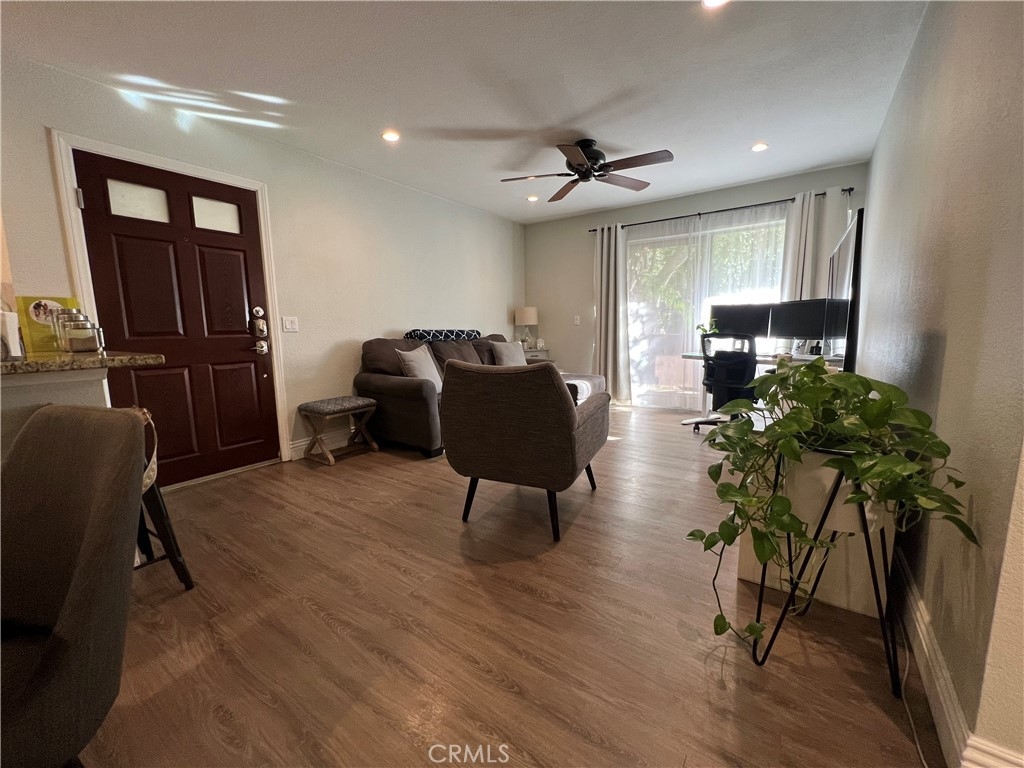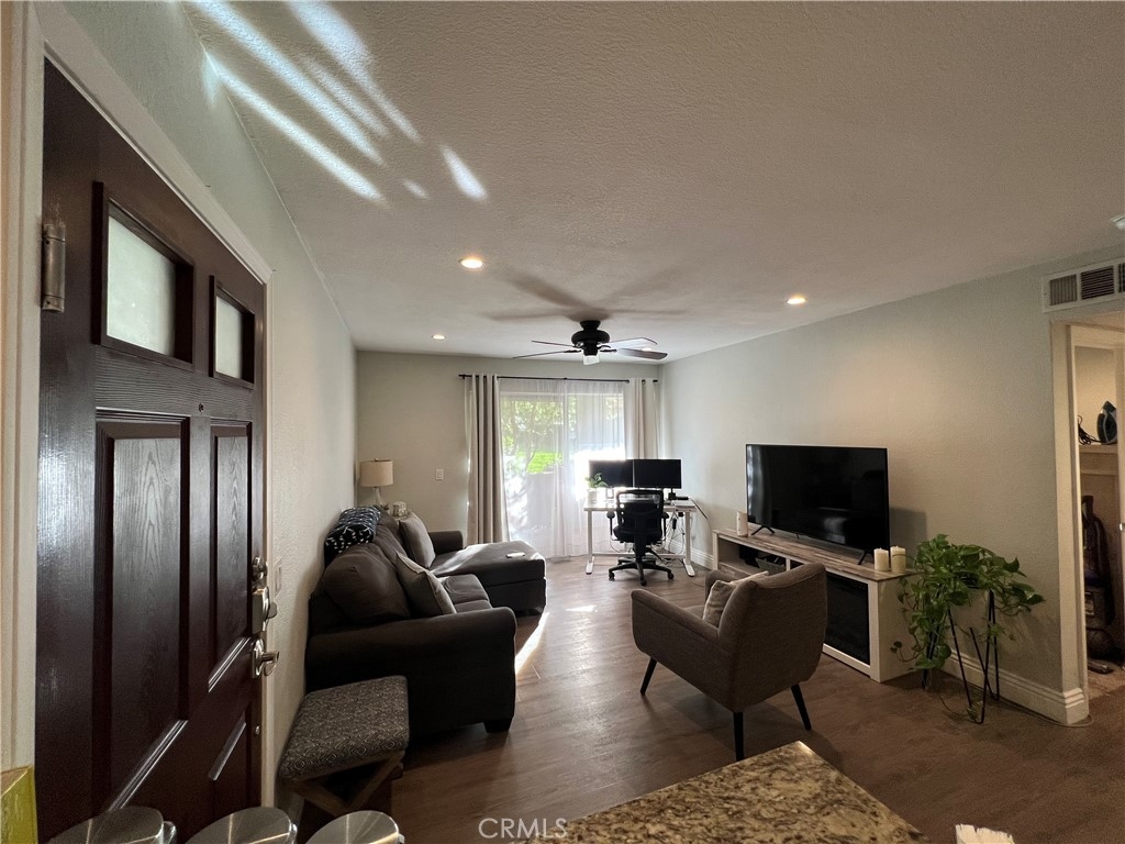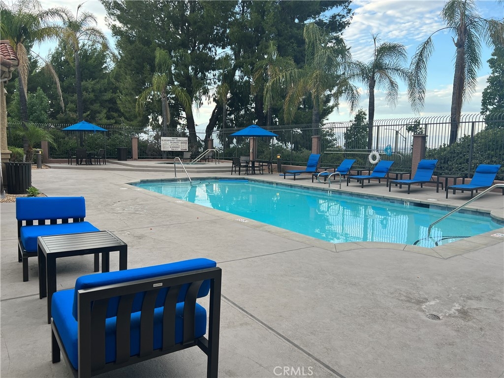 Modern Condo Living with Serene Views. Discover the perfect blend of comfort and convenience in this stylish 1-bedroom, 1-bathroom condominium located at 2500 San Gabriel Way, Unit 103, in the heart of Corona. With its thoughtfully designed layout and a host of amenities, this property presents an unparalleled opportunity for contemporary living. Property Features: Spacious Master Bedroom: Unwind in the generously sized master bedroom featuring a walk-in closet and plush carpet, offering a private sanctuary to retreat to at the end of the day. Inviting Living Spaces: The open concept design seamlessly connects the living room and dining area, creating a fluid space perfect for both relaxation and entertainment. The kitchen is a culinary haven, boasting light wood laminate flooring, modern appliances, and ample cabinet space. The adjacent dining area is ideal for intimate meals or hosting guests. Patio: Step onto your private patio and be greeted by breathtaking views of the surrounding walking trails. It's the perfect spot to sip your morning coffee or enjoy an evening breeze. Modern Comforts: Enjoy the convenience of central air conditioning, ensuring year-round comfort, while recessed lighting throughout creates a warm and inviting ambiance. Community Amenities: Embrace resort-style living with access to a range of amenities, including a pool, spa, clubhouse, gym facilities, BBQ area, volleyball court, and basketball court. An adjacent nature trail invites you to explore the outdoors. Tranquil Neighborhood: Located in a quiet and friendly neighborhood, this condo offers a serene environment to call home. Nearby parks, schools, and shopping options cater to every aspect of your lifestyle. Don't miss the chance to make this property your own.