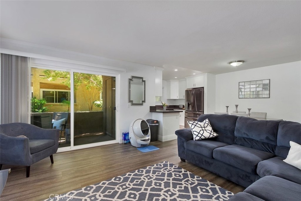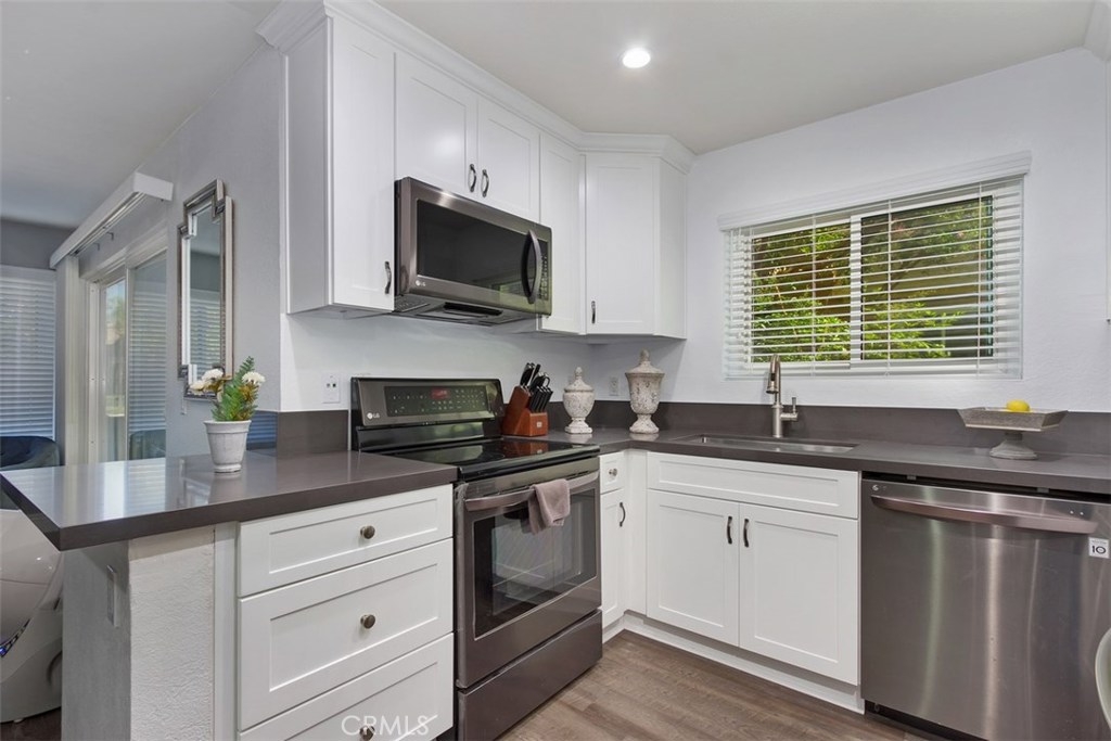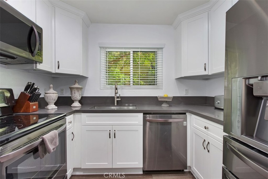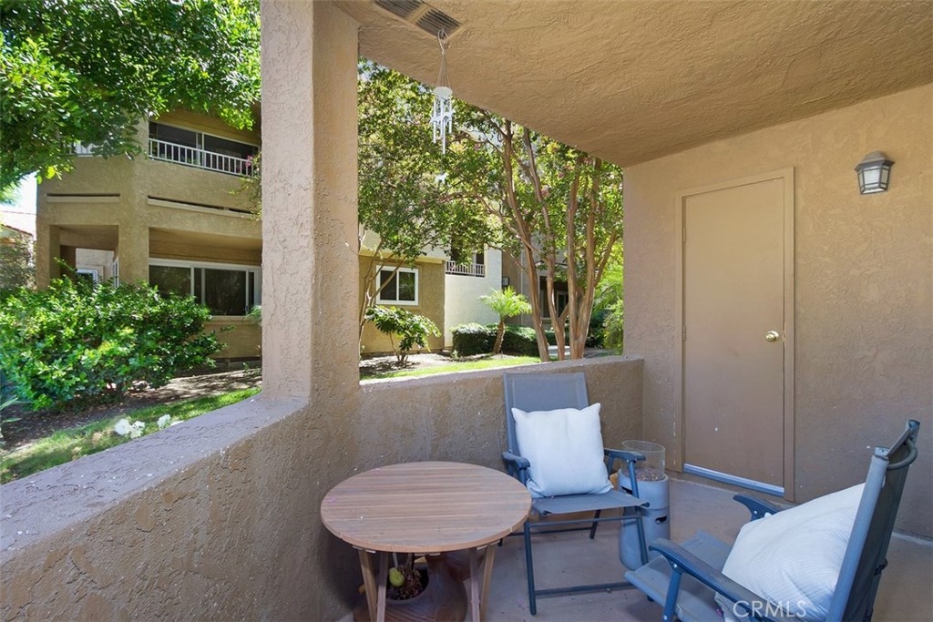 Gorgeous Sage Canyon Condo...Very desirable ground floor end unit that has been very tastefully remodeled...Everything has been redone within the last 2 years...You'll simply love the kitchen with it's Farm House Sink, Quarts Counters, Recessed Lighting and Crown Molding...Bathroom has been redone with water saving fixtures...The Bedroom has carpet and a walk-in closet...All the windows have been changed out to New Duel Pane Windows and there are blinds throughout...There is Laminated Flooring throughout...Laundry hook-ups in the closet in the hall...You"ll simply love the Open Floor Plan and wrap around patio that this unit has to offer...There is plenty of guest parking close by and the HOA Fees cover both Water and Trash.