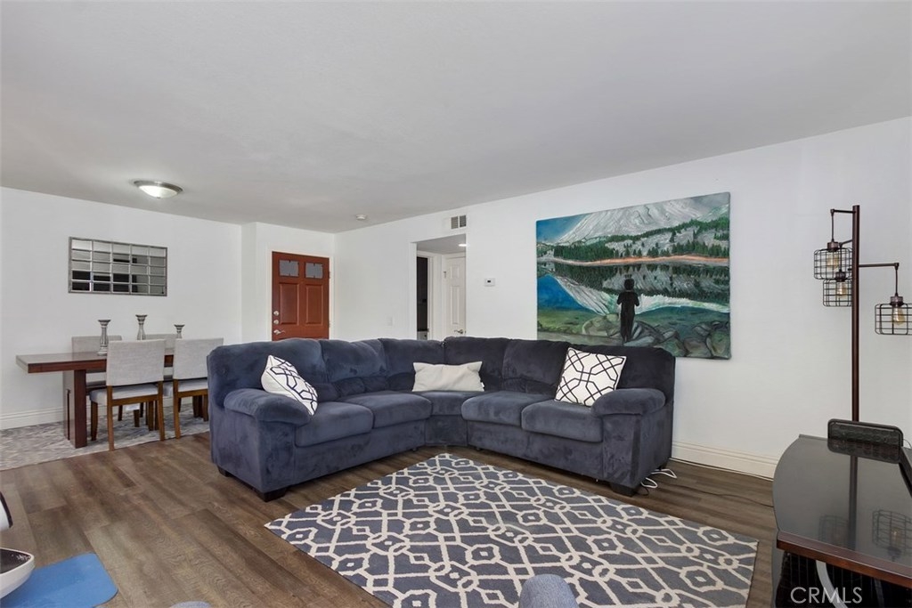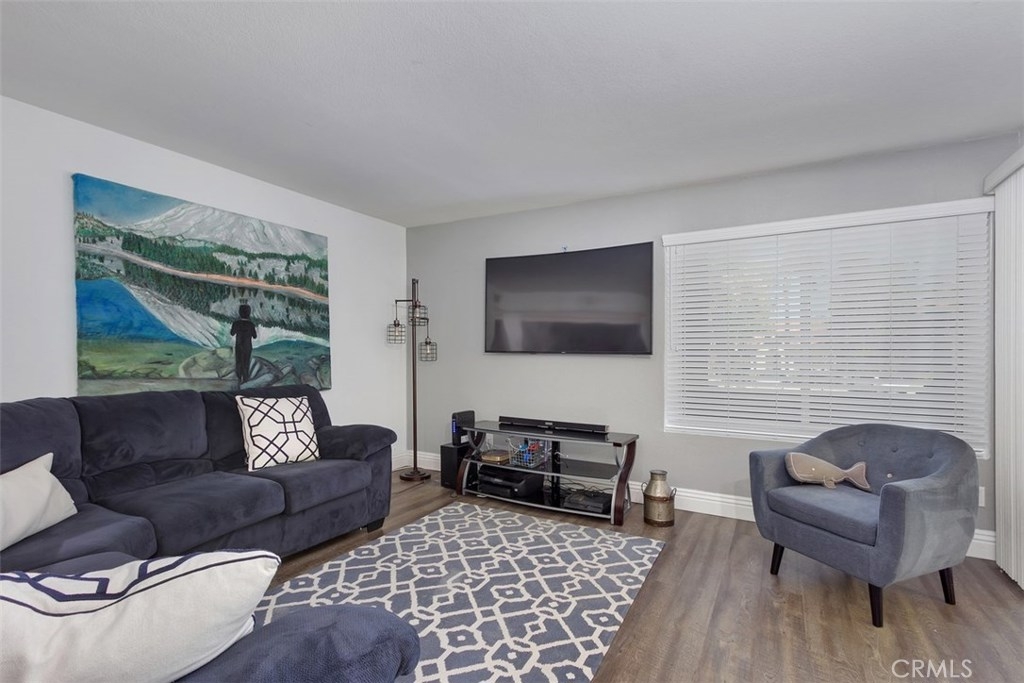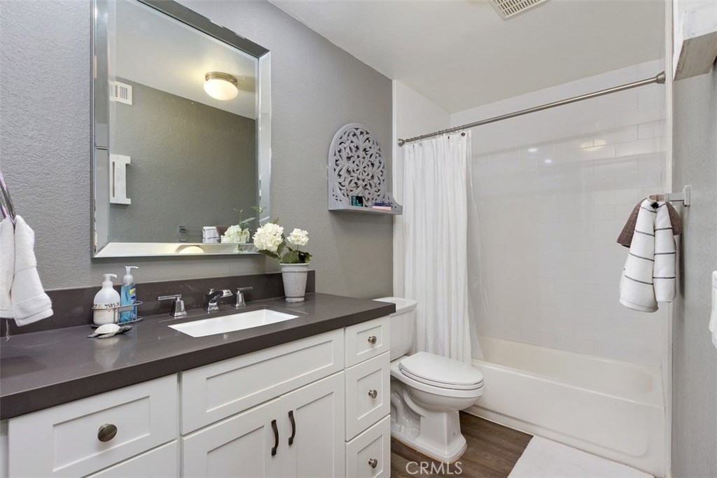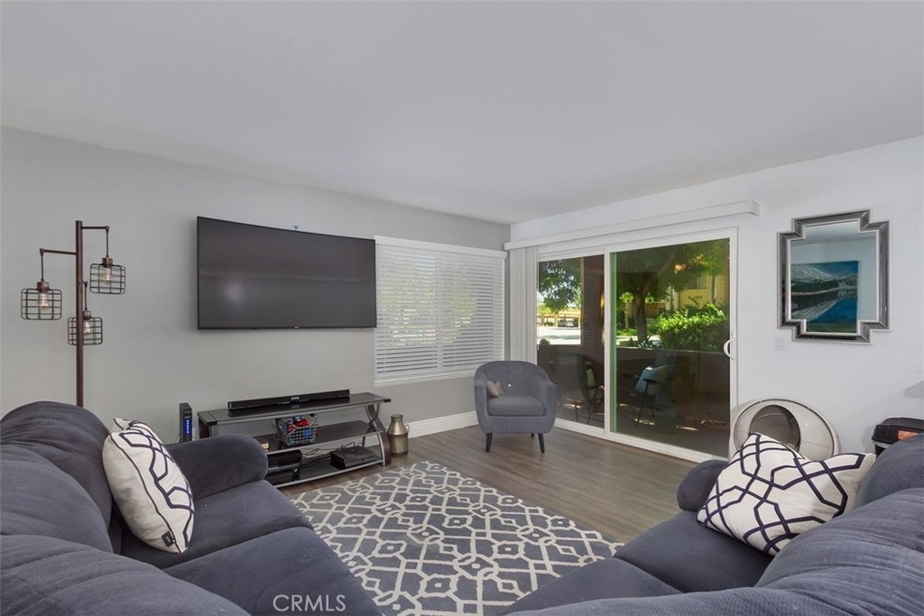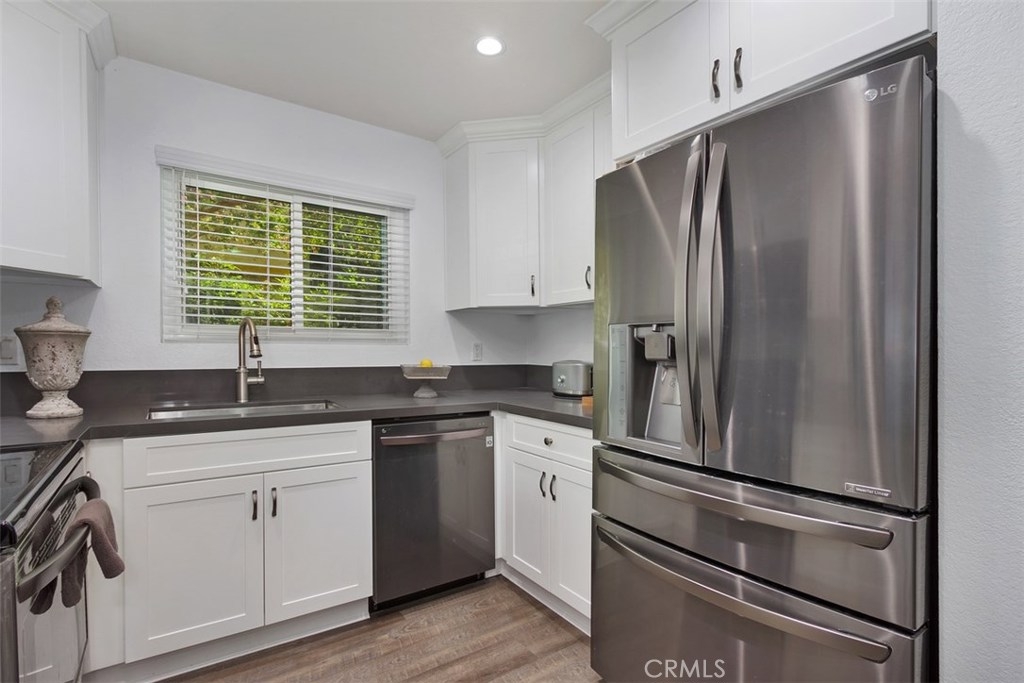 Gorgeous Sage Canyon Condo...Very desirable ground floor end unit that has been very tastefully remodeled...Everything has been redone within the last 2 years...You'll simply love the kitchen with it's Farm House Sink, Quarts Counters, Recessed Lighting and Crown Molding...Bathroom has been redone with water saving fixtures...The Bedroom has carpet and a walk-in closet...All the windows have been changed out to New Duel Pane Windows and there are blinds throughout...There is Laminated Flooring throughout...Laundry hook-ups in the closet in the hall...You"ll simply love the Open Floor Plan and wrap around patio that this unit has to offer...There is plenty of guest parking close by and the HOA Fees cover both Water and Trash.