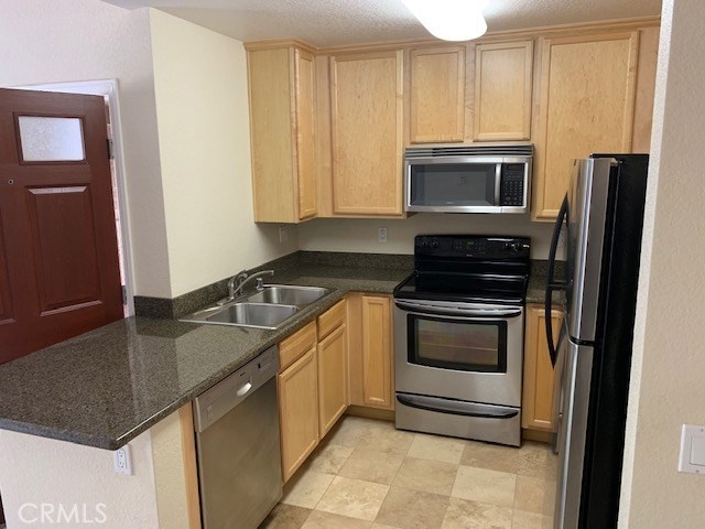 Sage Canyon condo. Single level third floor unit. Open floor plan with city view from balcony. Granite counter in kitchen and bath, stainless appliances refrigerator and washer and dryer included. Association includes, 2 club houses, picnic/BBQ area, gym, basketball, pool and water and trash included. Easy access to freeways.