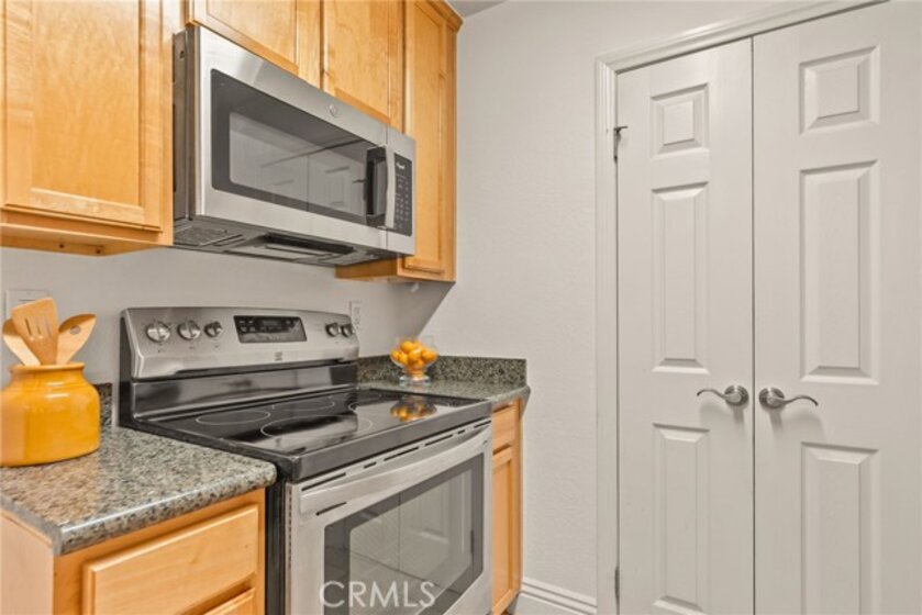 BEAUTIFUL CONDO IN SAGE CANYON COMMUNITY! This well-maintained 2 BEDROOM, 2 BATH upper-level unit offers ALL LIVING SPACE ON ONE LEVEL with an OPEN CONCEPT LAYOUT perfect for entertaining. Enjoy a bright living area with BAMBOO-STYLE FLOORING, FAUX STONE FIREPLACE, and access to a PRIVATE BALCONY ideal for morning coffee or evening relaxation. The KITCHEN FEATURES GRANITE COUNTERTOPS, STAINLESS STEEL APPLIANCES, and WOOD-FINISH CABINETS. The PRIMARY SUITE includes a WALK-IN CLOSET and a FULL BATH with GRANITE COUNTERS and TUB-SHOWER COMBO. Both bathrooms have updated finishes and ample storage. Additional highlights include IN-UNIT LAUNDRY, HALLWAY STORAGE CLOSET, and TWO ASSIGNED PARKING SPACES—one COVERED CARPORT and one OPEN SPACE. Community amenities include a POOL, SPA, FITNESS CENTER, BASKETBALL COURT, and CLUBHOUSE. Conveniently located near the 91 AND 15 FREEWAYS, just off the GREEN RIVER EXIT, and WITHIN WALKING DISTANCE TO SHOPPING CENTERS. PERFECT STARTER HOME OR INVESTMENT PROPERTY IN A PRIME LOCATION OF CORONA!