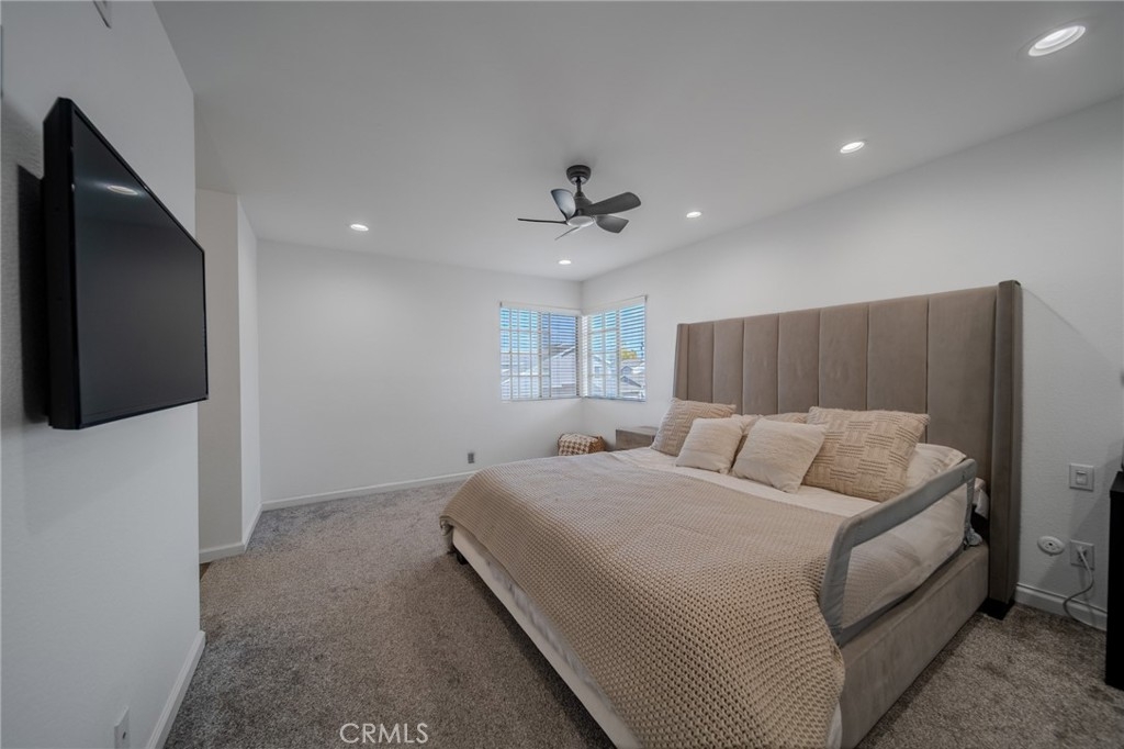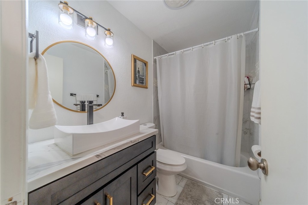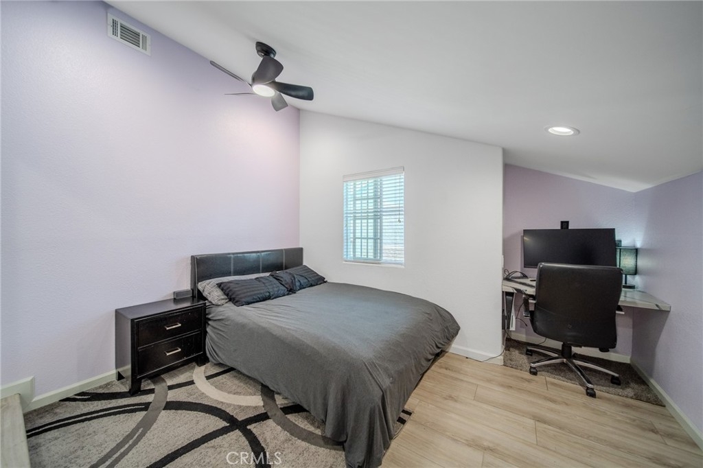 Welcome to this beautifully upgraded 3-bedroom, 2-bath home where modern comfort meets stylish living. Vaulted ceilings and natural light fill the open-concept living area with a cozy fireplace, flowing into a chef-inspired kitchen with quartz counters, white shaker cabinets, stainless steel appliances, and a breakfast bar. The main-level bonus room/office opens to lush greenery, while upstairs a versatile loft adds extra living space. The primary suite features a walk-in closet and ensuite with dual sinks and skylight. Other highlights include a two-car garage, new HVAC, dual-pane windows, water heater, and a fenced backyard with low-maintenance turf, fruit tree, and fire pit—perfect for entertaining. Great location near freeways, shopping, dining, and parks. Move-in ready—don’t miss this one