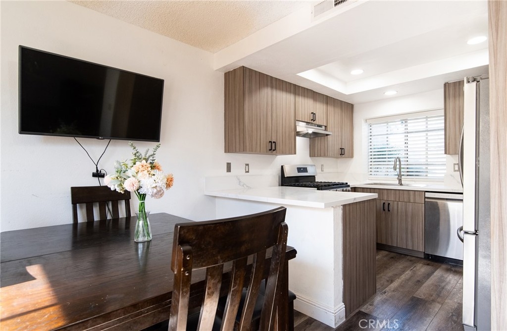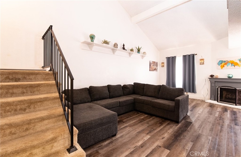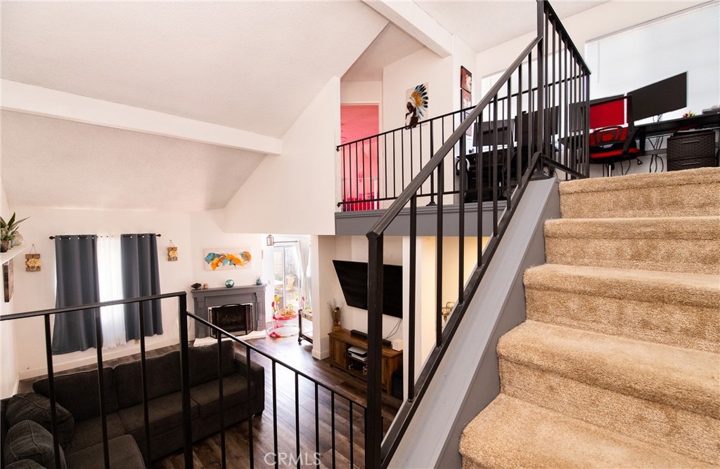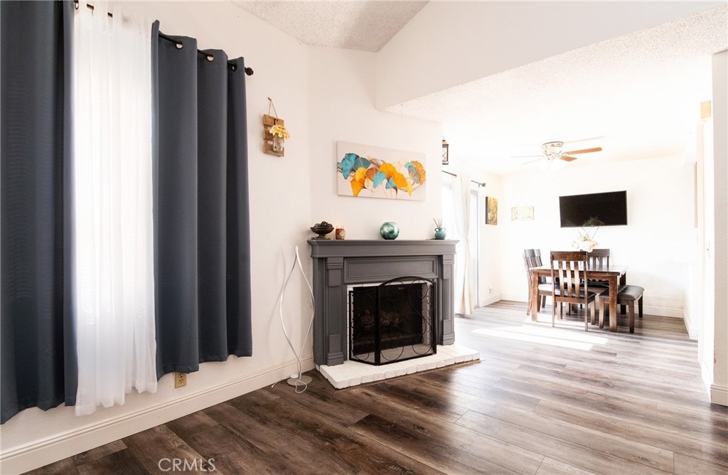 This stunning property features 2 bedrooms, 2.5 bath. Inviting living room with fireplace, Kitchen was recently remodeled with new quartz countertops, new cabinets and new vinyl flooring downstairs. 2 car attached garage. Nice oversized patio to enjoy your gatherings with family and friends. Plumbing was recently changed through out the unit. This complex offers community swimming pool and play ground. This is a Must see property!!