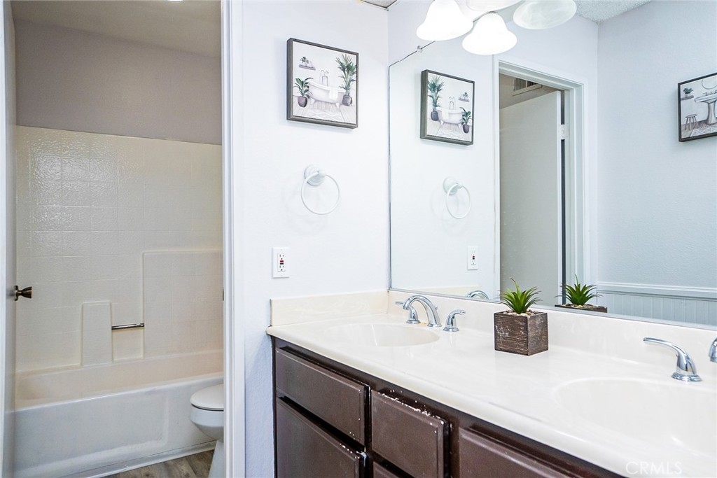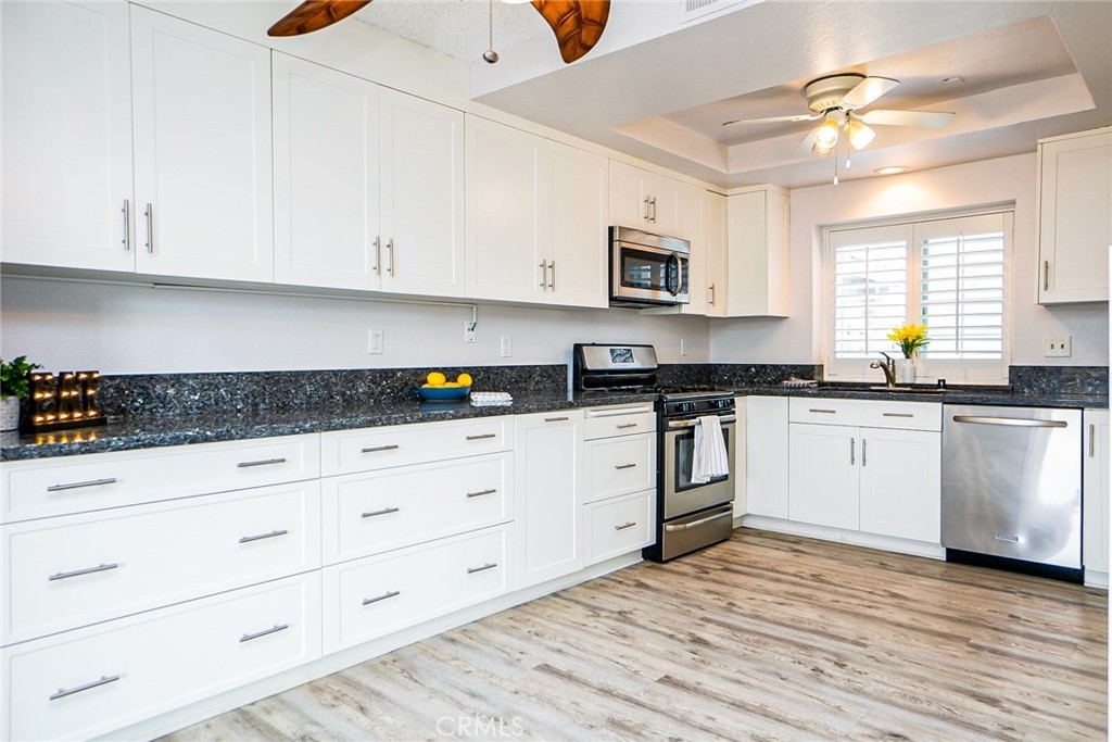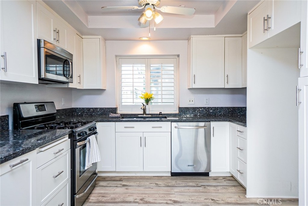 Charming 2-Bedroom, 2.5-Bathroom, 2 Story Home in the Heart of Corona!!! This home is perfect for commuters, or those looking to downsize. Step into the welcoming high-ceiling that leads to an open living room space which leads to a stunning, brand-new kitchen featuring granite countertops, pull-out cabinets for easy access, and a pantry area with additional storage. Stainless steel range and dishwasher and microwave included. The kitchen and dining room area is enhanced with new hardwood flooring, ceiling fans, and newer windows with stylish shutters throughout. Downstairs has a powder bathroom. Charming property has two spacious bedrooms, each with its own private bathroom, providing comfort and convenience. Bedroom 1 has upgraded carpet, and bathroom has an upgraded walk-in shower with beautiful tile. Bathroom two offers a relaxing tub and brand-new flooring. The cozy backyard patio is perfect for outdoor entertaining, offering a peaceful space to relax or host guests. The home also includes a 2-car garage with built-in storage cabinets, providing extra space for all your needs. The community offers amenities, including a pool, spa, and a small play area with picnic tables. The HOA takes care of outdoor gardening, ensuring the complex remains well-maintained. Don't miss the opportunity to see it for yourself!
