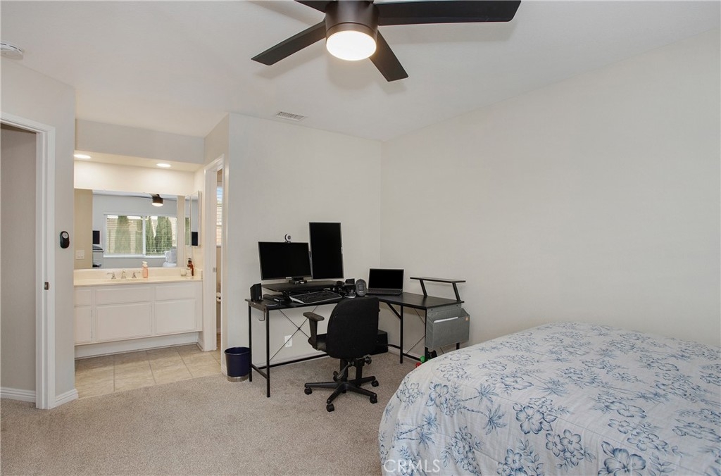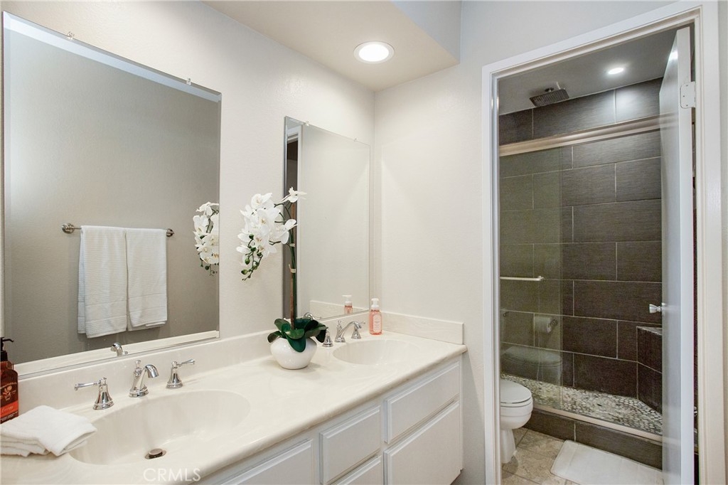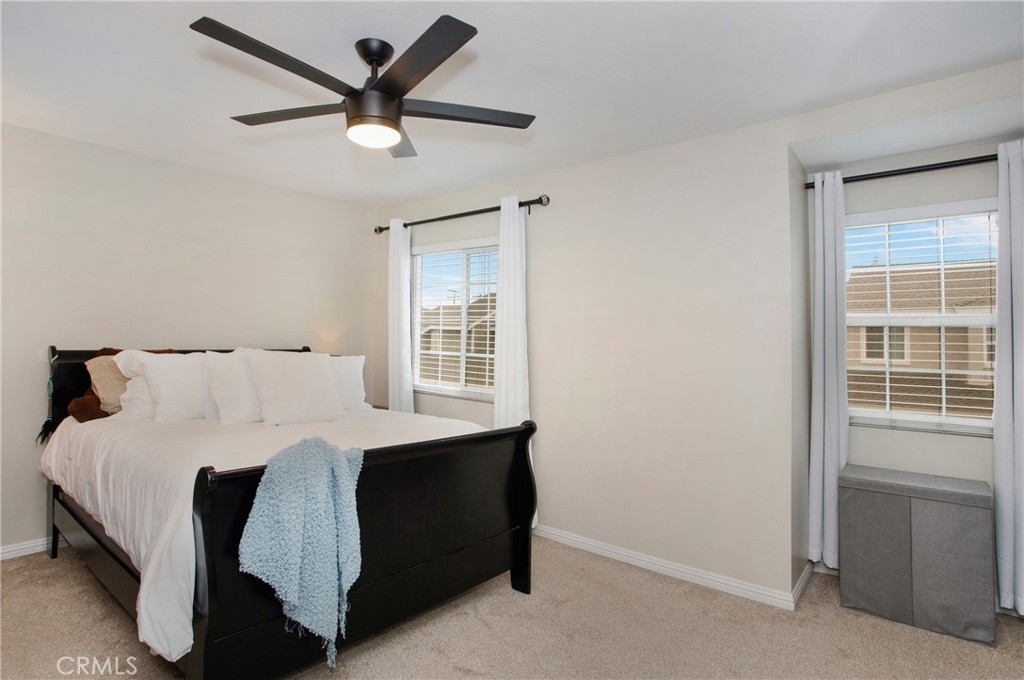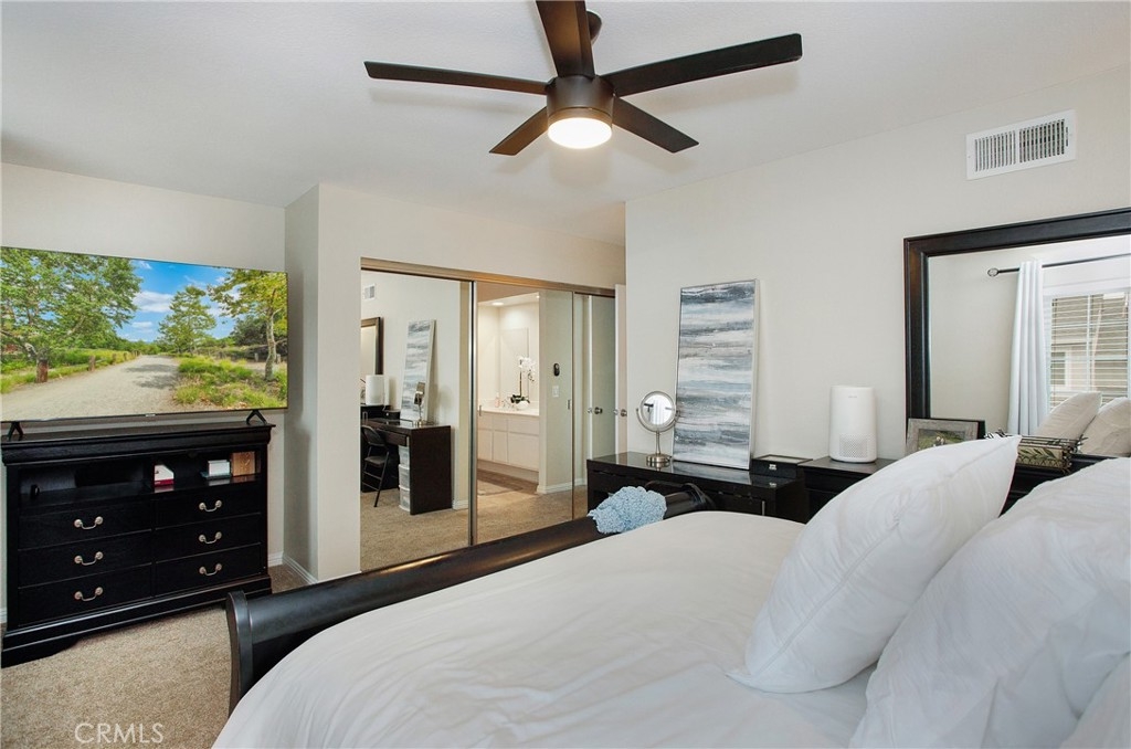This is the one you've been waiting for! Welcome to 844 Live Oak Place, offering an open floorplan and vaulted ceilings in this upgraded property. Living room features a fireplace filament and glass and continues into the dining area open to the back yard. A bright and inviting kitchen with recessed lighting. Two two primary suites, each with a private bath, and a lovely yard with artificial turf and a patio for entertaining and BBQ's. Additional half bath downstairs. 2 Car attached garage includes laundry hookup and storage space. Upgrades include newer paint, chestnut flooring, hand scraped textured ceilings, and appliances that make this property truly in move in condition. Community is not FHA or VA approved. Convenient access to the 91 freeway.