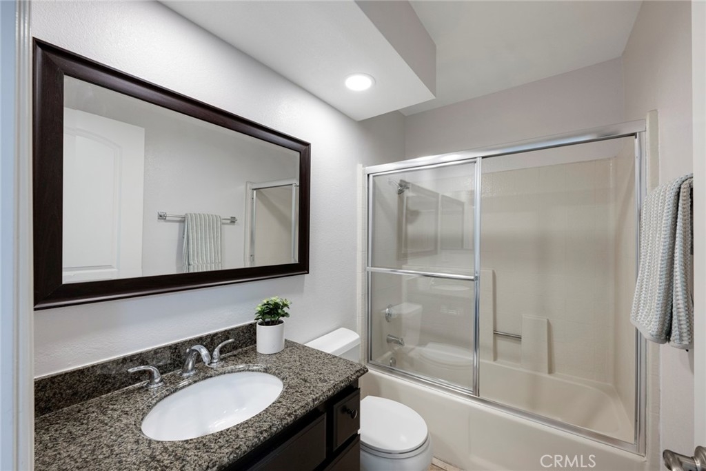 Welcome Home! This 3 bedroom + additional loft space and an attached 2 car garage is the home you have been looking for! Vaulted Ceilings, Tile Flooring, and a Beautifully White-Washed Fireplace welcome you into this home’s living room! The living & dining areas then open up to the kitchen which includes Updated Granite Countertops, newly installed LED Canned Lighting, & stainless-Steel appliances! There is a convenient and well-sized bedroom downstairs, which also makes a great home office with a built-in desk area! Rounding out the first floor is a full bathroom! Upstairs you will find the Master Suite with a Dual Sink En-Suite Full Bathroom, 2 Closets including an oversized Walk-in, a ceiling fan and new mirrored closet doors! You will also find an additional secondary bedroom upstairs, as wells as a Bonus Loft that is not always included with this floorplan; Bonus Space! Outside is your nice-sized patio backyard with a patio cover for your family meals and entertaining! No need to bring your tools or paintbrush; it has been freshly painted throughout with brand new carpeting for you to move right in! Other features include new shower doors, mirrored closet doors, lighting fixtures and more! All of this in a super convenient Corona location, right off of the 91 Freeway just 5 miles from Orange County! The Santiago Townhomes community also features an inviting pool, jacuzzi, & park with children’s playground! 881 Live Oak Place; You Will LOVE Living Here!
