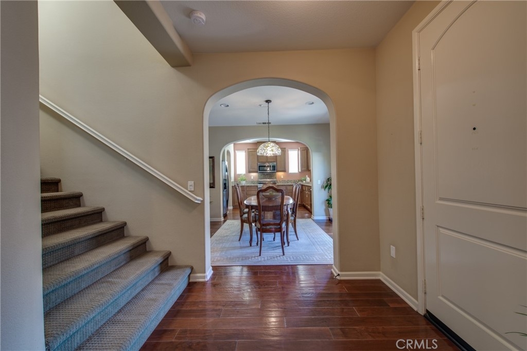 55+ COMMUNITY! Welcome to this beautiful gated Townhome located in the highly sought after community Owens Cove of Dos Lagos. This Senior 55+ community is conveniently located near Trader Joe's, Dos Lagos shopping center, Movie Theaters, Michael's craft store and the 15 FWY. Upon entering this well maintained home, will be greeted by rich wood flooring in the foyer and through-out the first floor. To your right, you will enter a large dinning room that features double glass doors that open to a porch for your enjoyment. The Dinning room is open to the Kitchen, which has an abundance of counter space, upgraded cabinetry, Granite counter tops, a butler pantry and many more upgrades as well. It's a cooks dream! To the left of entry, you will enter a spacious Living Room for all your entertaining needs. The large Primary Bedroom located downstairs features a large Bathroom with dual sinks, stand-up shower, and a huge walk-in closet. Also downstairs has a separate Laundry room, recess lighting. Ceiling fans throughout the house. Upstairs you will find two more large bedrooms with carpet, one featuring a balcony that you will enjoy on warm summer nights. Along with a full bathroom. The grounds surrounding the property offers a pool, Club house, outdoor BBQ, along with lots of greenery. This home is a must see!