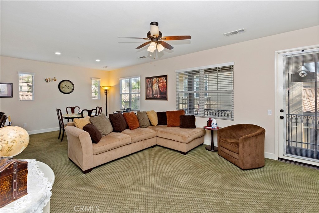 Location! Location! Welcome to Dos Lagos, Shady Grove 55+ Gated Community- Resort Style Living! Prime location across the street from The Shops at Dos Lagos, complete with lakeside walking, fantastic restaurants, luxury movie theater, and entertaining shopping. The kitchen has granite countertops and stainless steel appliances with plenty of cabinets. The kitchen, dining area, and living room have a nice open floor plan with lots of natural light, which leads to the balcony. Master Bedroom has a large walk-in closet, dual sinks, and ultimate privacy. The balcony offers beautiful views and space to relax and dine outside. Enjoy the plush manicured landscaping, picnic, and barbecue areas. Direct Garage Access with 2 car garage and so much more! The Clubhouse, Relaxing Pool + Cabana's are a short walk to enjoy at your leisure. Come out & see how great your new life will be as everything you need is within walking distance. Easy access to the I-15 & 91.