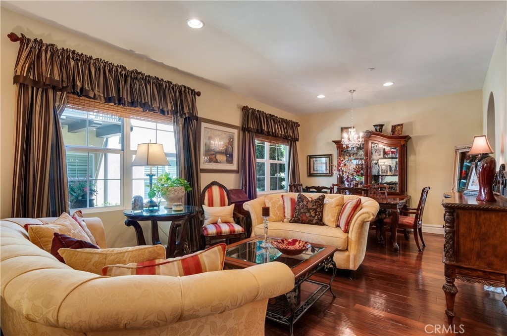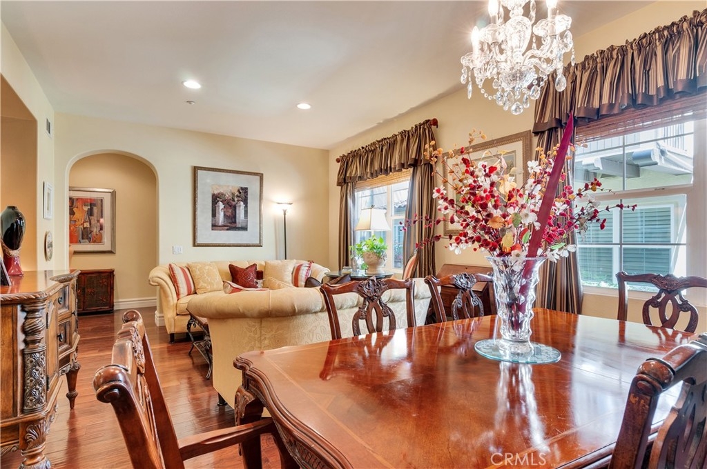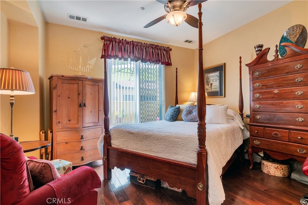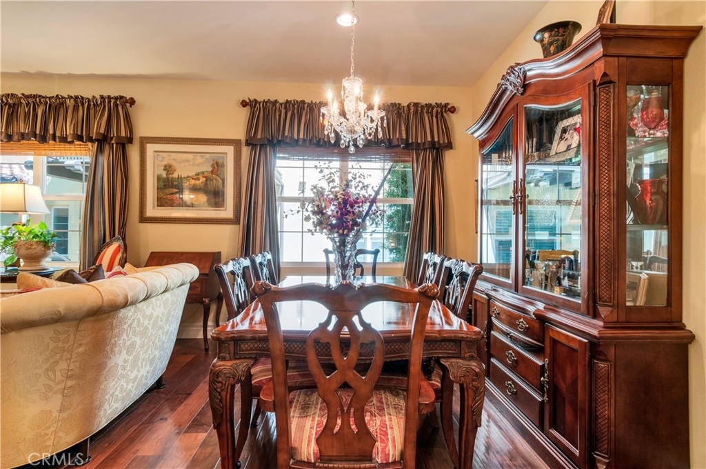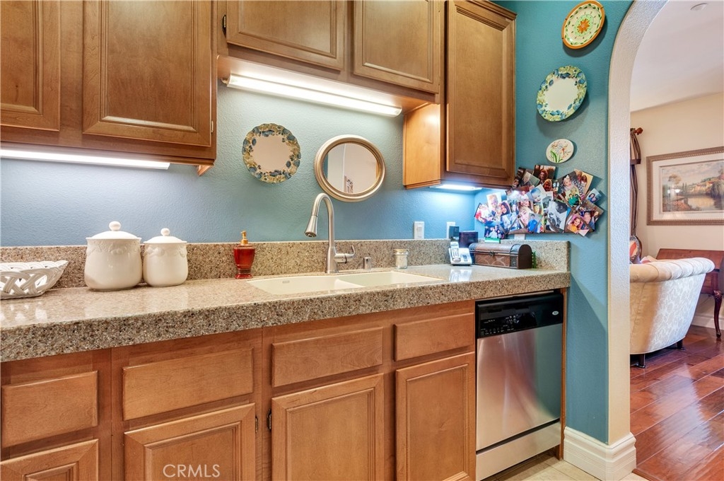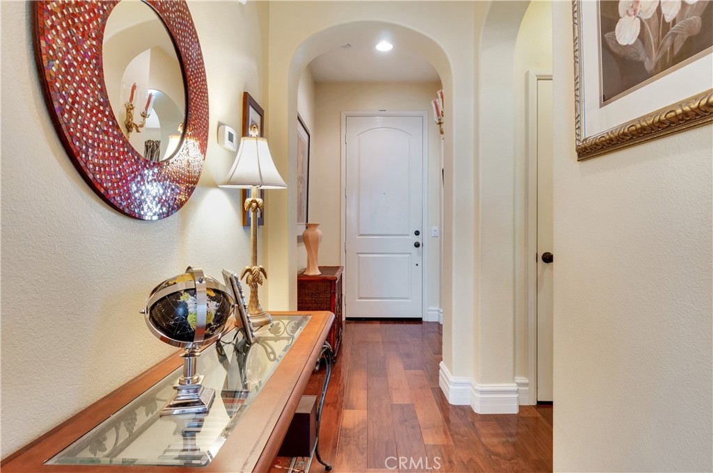 Rare Opportunity to own a Single Story Unit and Live in this Resort Style 55+ Gated Community! This Home is just steps away from the Prestigious Dos Lagos Shopping Center which includes many Fine Dining Resturants, Upscale Theaters and Trendy outdoor Shops. This One Level Condo rarely comes available on the market so you better hurry on this highly upgraded home! Talk about Model Perfect! Well here it is with all the UIpgrades! The kitchen offers Stunning Granite Conter Tops, Under counter lighting to set a Romantic atmosphere when the kitchen is closed. This Kitchen is fit for the Finest of Chefts with nicely appointed Stainless Steel Appliances. This Property offers a large Dining Room area right next to the kitchen and Living Room, such an open concept! Now off to the Large Master Suite with its own Walk in Closet and Private Bath. Did I mention the Real Hardwood Hand Scrapped Walnut Floors with 7" baseboards! The Owners have also had a New Air Conditioner installed 2 years ago and a New Stove, Dishwasher, Microwave and Garbage disposal 3 years ago. Do you need to throw a Steak on the Barbie, well we have you covered because this unit has its own private patio! This Quiet, exquisitely maintained, gated complex is gorgeously landscaped and includes a Large Pool that is heated year round, Spa, Club House with its own Private Kitchen for all your Parties, Fireplace to Relax by and a Pool Table for you who indulge! This Community has so much to offer with all the Shopping and Beautiful Golf Courses plus it is just minutes to the I-15 & 91 Freeways and did I mention just a short trip to Temecula's Finest Wineries!