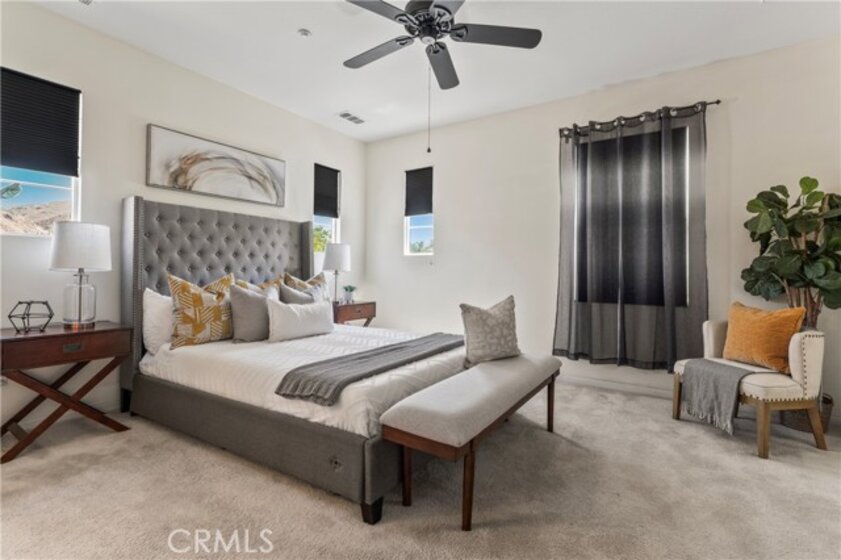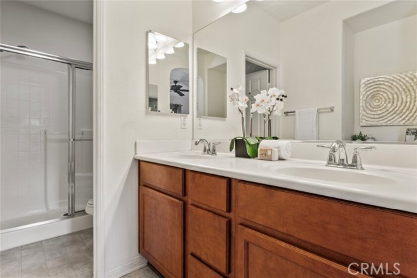 A great opportunity for this charming and well maintained home in the heart of Corona. Well located in the sought after 55+ gated community of Owen's Cove. A beautiful foyer greets you from main entry, leading to the 2 car garage. A portable "lift" adjacent to the garage door adds convenience in sending/ moving items up to the main floor. Upstairs features an open-concept design, creating a seamless flow between the living room, dining area, and kitchen, suited for entertaining and everyday living, for a perfect blend of modern comfort and classic style. A balcony is easily accessible from the living room, accommodating leisure moments. The well-appointed kitchen boasts contemporary appliances, ample cabinetries, granite counters, and a sink in island with modern drop down light fixtures. Both bedrooms are spacious, with walk in closets. Relax in the serene primary suite with a private bath. The dedicated laundry area upstairs and 2-car garage add convenience. Other features include fire sprinklers, a water softener system. HOA amenities include: pool and spa, club house and shaded gazebos. A vibrant community with easy access to local amenities and transportation routes. Near "The Shops at Dos Lagos" and "Crossings at Corona" with great dining, movie theatre, golf course, shopping, parks, man made lake and many more. Come visit and make this delightful home yours!