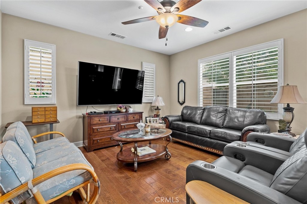 RESORT STYLE LIVING IN FABULOUS DOS LAGOS 55+! Welcome to Owens Cove at Dos Lagos, an intimate Senior Private Gated Community Near Everything in Corona. This rare single story end unit which only shares one common wall, has its own private enclosed back patio! This home is located across from exceptional Shopping, Dining, Entertainment State-Of-The-Art Movie Theater, and Golf Course. Enjoy Summer Concerts, and Walking Trails along the Beautiful Lake or take in the stunning Views of Nearby Cleveland National Forest. This Beautifully maintained Home offers 9-Foot Ceilings Throughout, Two large Bedrooms, Two Bathrooms, Large Great Room, Spacious Eating Area, Indoor Laundry, Private Attached Two Car Garage. Lavishly Appointed Interior with Bamboo Wood Flooring, Granite Counters, Stainless Steel Appliances, Plantation Shutters, Ceiling Fans and Arched Doorways. Feel like you're on Year Round Vacation amid the World Class Community Center with its Lush and Tropical Grounds; Relax in the Pool and Spa. Meet Friends at the Clubhouse or Read a book by the fire. Hurry on this before it's gone!