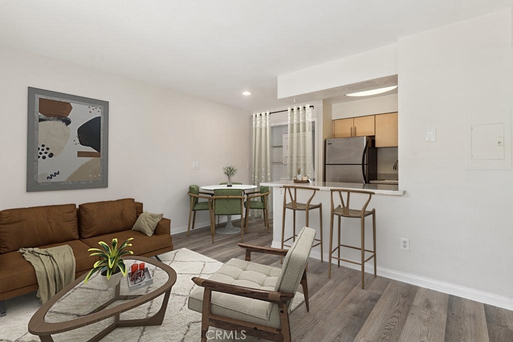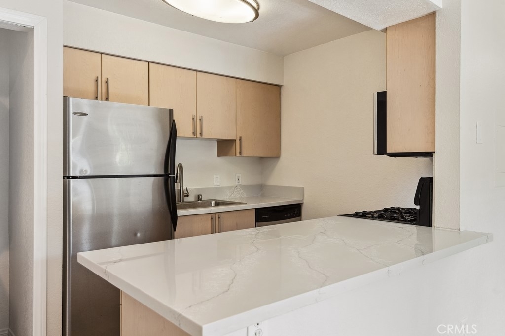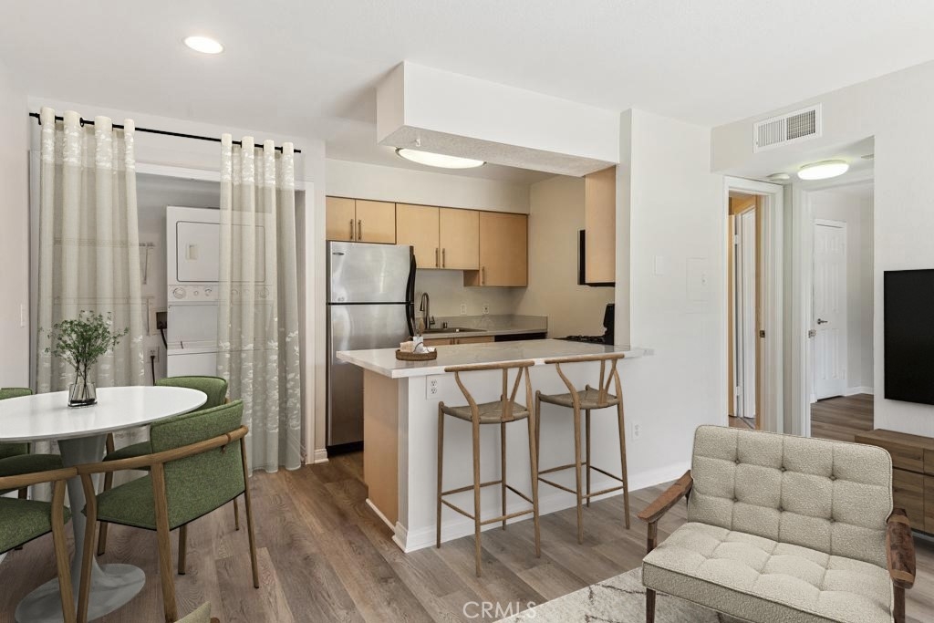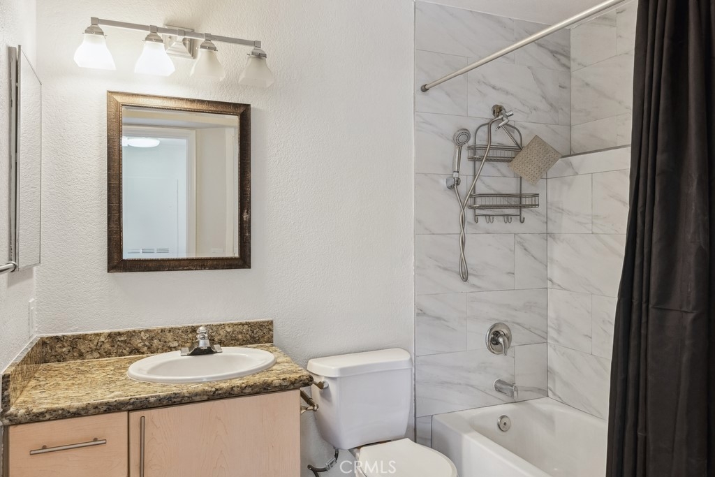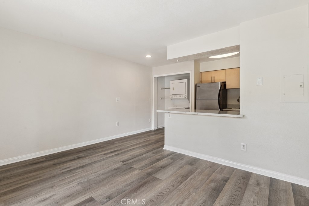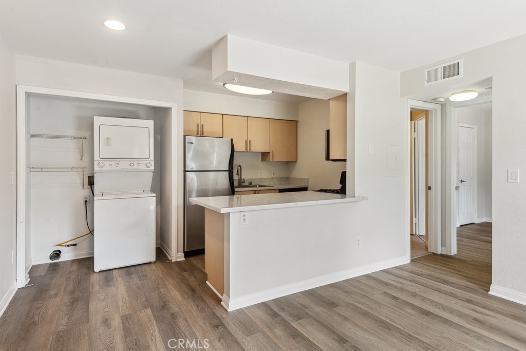 CASH ONLY - NOT WARRANTABLE BECAUSE ONE ENTITY OWNS 50% OF THE COMPLEX - CASH ONLY - Cozy Move-In Ready Condo in Gated Siena Community – Corona Hills. Welcome to this charming ground-floor condo in the highly desirable gated community of Siena in Corona Hills! This move-in ready unit features new flooring throughout and a freshly painted interior for a modern touch. Go inside to an open-concept kitchen, dining, and living area, creating a bright and inviting space. The kitchen boasts stainless steel appliances, quartz countertops, and sleek modern cabinetry. A sliding door from the living room leads to a private covered patio, perfect for relaxing outdoors. The spacious bedroom and full bathroom with a tiled shower surround are conveniently located off the hallway. In-unit laundry is tucked away near the kitchen for added convenience. This condo includes an assigned carport space and is part of a community with fantastic amenities—a pool, BBQ areas, tennis courts, and a gym. Sewer and trash services are included. Located near shopping, dining, and easy freeway access, this is the perfect place to call home! Don’t miss this great opportunity!