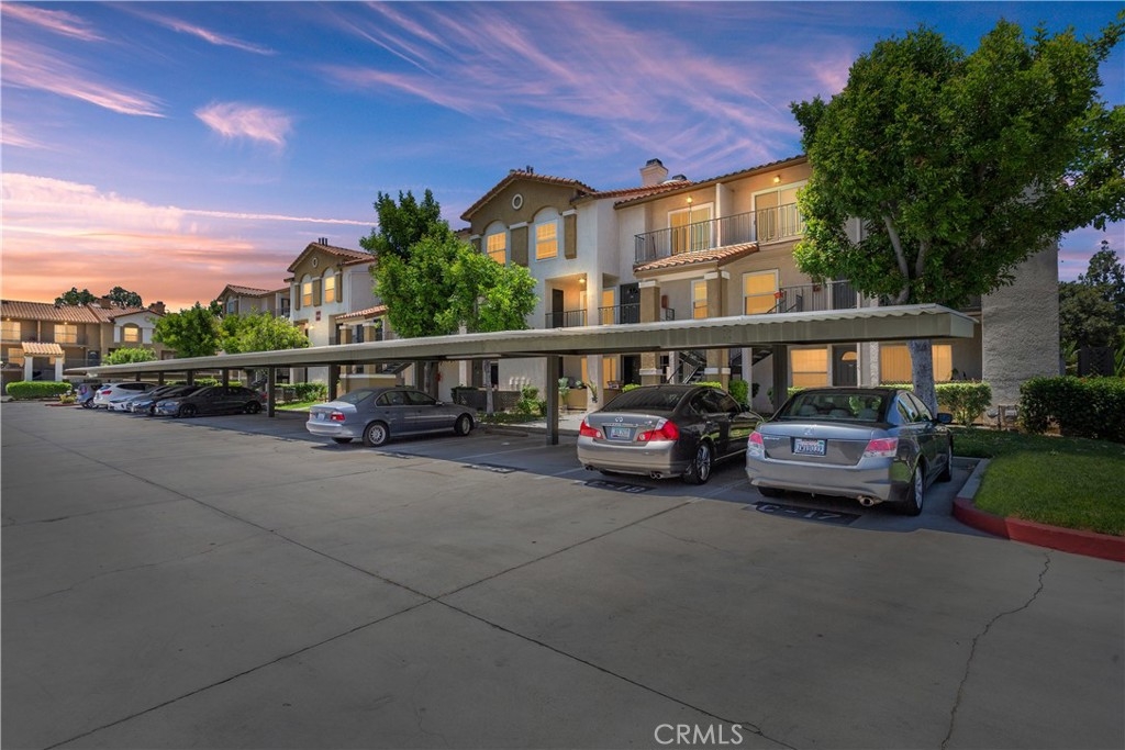 Welcome to Siena in Corona Hills, the perfect home in a perfect location! This gated community offers resort-style amenities, such as a clubhouse, tennis courts, gym, computer room, pool, and BBQ area. This upper level condo features hard wood flooring throughout, and an open concept kitchen with granite countertops and bar seating, opening to a lovely dining room and family room complete with fireplace and balcony. The two en-suite bedrooms each have walk-in closets and bathrooms featuring granite counters. Plus, one of the bedrooms offers a private balcony. Laundry is conveniently located inside the unit, close to the kitchen. The condo comes with two assigned parking spaces, one in a covered carport. Close proximity to two shopping centers, offering multiple options for dining, shopping, and entertainment, and easy access to the 91 and 15 freeways. HOA fees include all amenities, including water, trash and sewer. Come see if you could picture yourself living here!