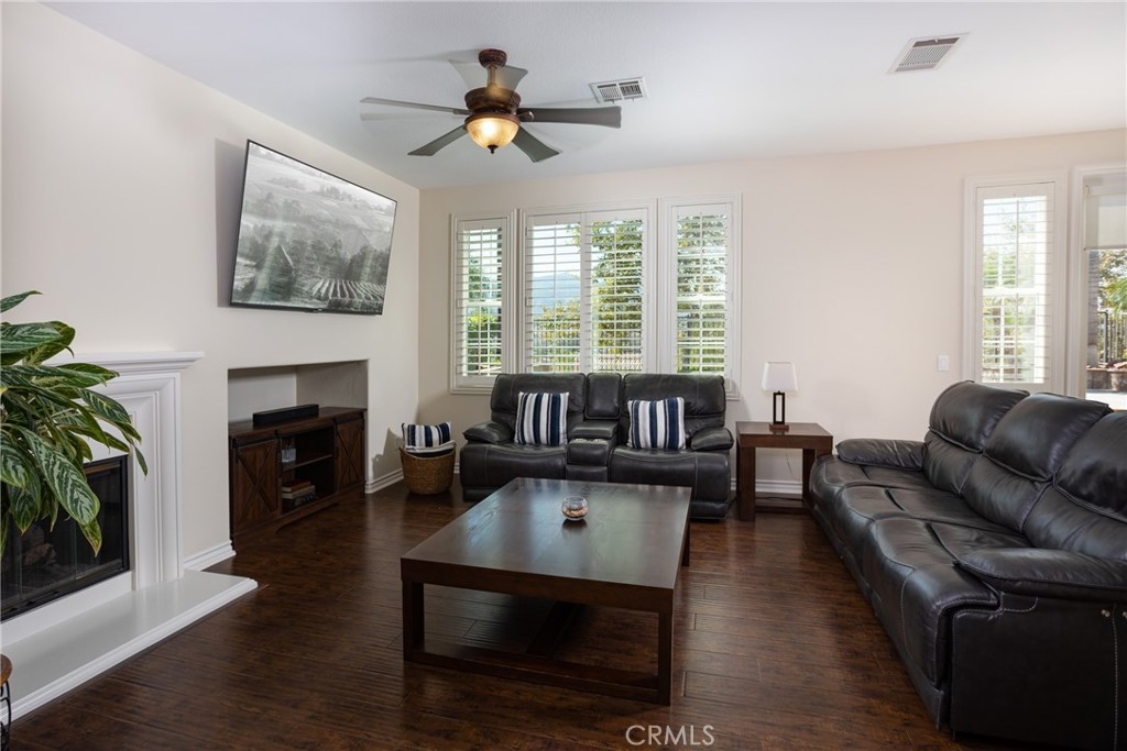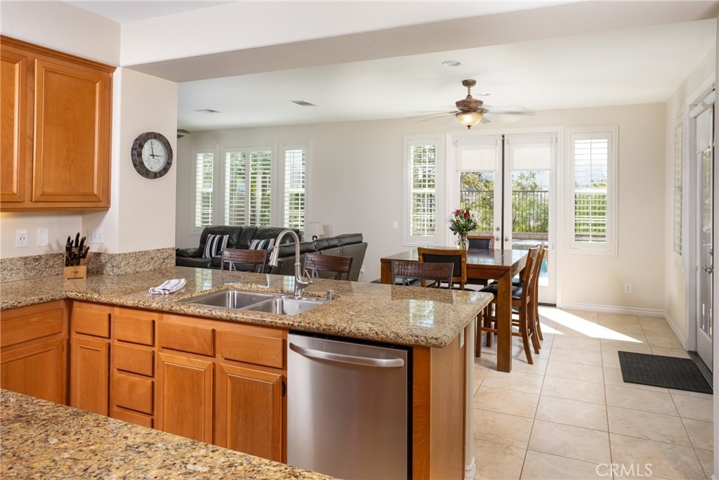 Rare designer Tuscan Villa perfectly situated on a coveted pool and view lot in the sought-after gated community of Dos Lagos. This entertainers’ dream floor plan encompasses 5 bedrooms (3 with walk-in closets) and 3 bathrooms including a downstairs bed and full bath with approximately 2,491 square feet of meticulously maintained living space. Enter through a private courtyard perfect for gatherings while the welcoming arch entry opens to high ceilings, tile and wood flooring. The open main level boasts a living room with a fireplace, built-in entertainment nook with a wall of windows that illuminate natural light throughout. The chef's dream kitchen offers a large island with granite countertops, stainless steel appliances, ample cabinet space, a walk-in pantry and adjoining dining area. The double doors open to your own private oasis offering a private patio for dining al fresco, a sparkling pool and breathtaking sunset views over the mountainous landscape. The master suite offers the perfect retreat with amazing views, a walk-in closet and a “spa-like” master bath encompassing a large shower and separate soaking tub. Other custom appointments include an extra storage closet in the hallway, plantation shutters, new HVAC, an inside laundry room with sink and cabinets, energy efficient windows on the west side of the house (reducing outside noise, cutting down on indoor heat during peak sunlight hours, and saving energy costs) as well as being equipped with SmartHome technology throughout. This home is directly across the street from the community playground and picnic area in the coveted Dos Lagos community perfectly located 1/2 mile away from the Dos Lagos shopping center and in close proximity to schools and freeways.