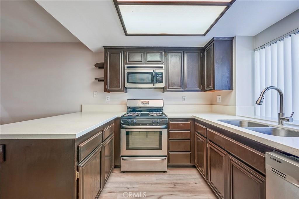 Gorgeous, turnkey 2-bedroom 2.5 bath, two story townhome with attached 2 car garage and full driveway situated in the highly desirable South Corona community of The Gallery. Property features neutral decor throughout with new paint, new carpet, new vinyl plank flooring throughout downstairs, and new central air/heating system. This townhome features a large living room with vaulted ceiling and slider leading to your private patio. Beautiful kitchen with quartz counters, stainless steel appliances, and breakfast bar. Separate dining area with ceiling fan. Dual master suites upstairs with vaulted ceilings, and mirrored closet doors. One has huge walk-in closet and newly reglazed shower, the other features a tub/shower combo, and linen storage. The community features pool, spa, walking paths and greenbelts. It is situated close to schools, parks, restaurants, and shopping including The Crossings and Dos Lagos.