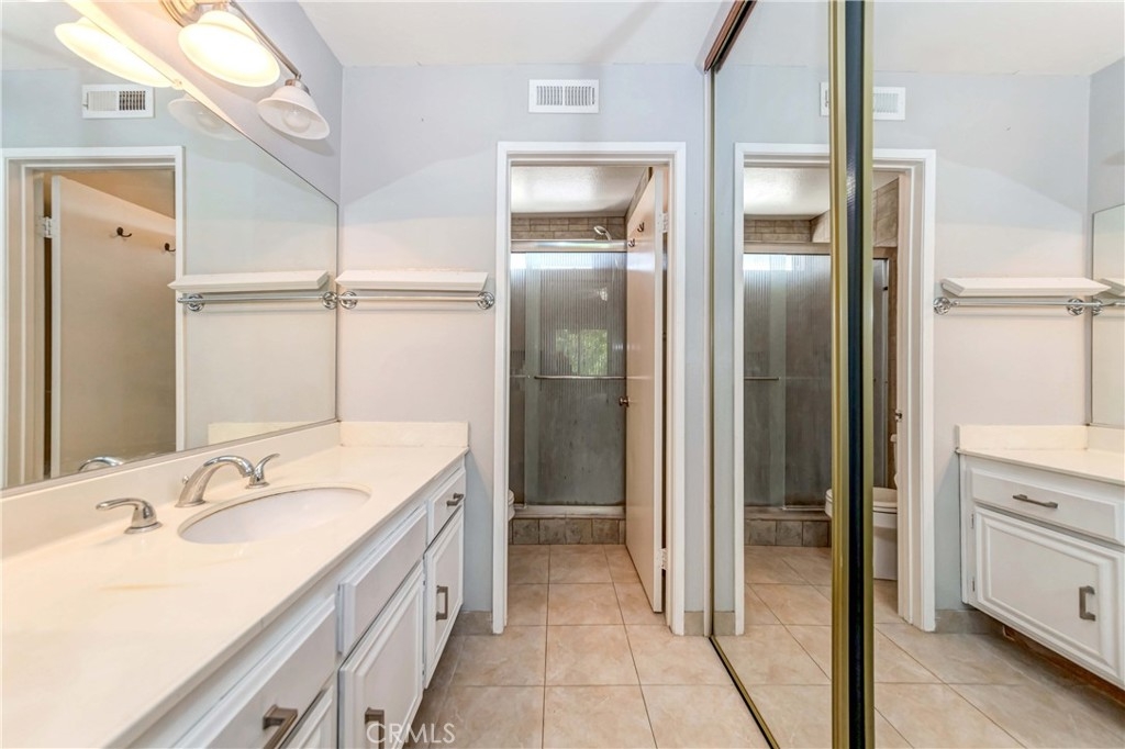 location! location! This townhouse is close to 15 freeway and 91freeway and is right behind the Football-famous Centennial High School. The two bedrooms each have their own private bathroom, the bathroom has upgraded tiles and a guest bathroom downstairs. Laminate flooring, custom wood panels and upgraded lighting fixtures. Also, two car garages, two car driveways and close to community pool and spa. For kids' safety, the Speed Bumper and Homeowners Association also includes a security camera and a security patrol .
