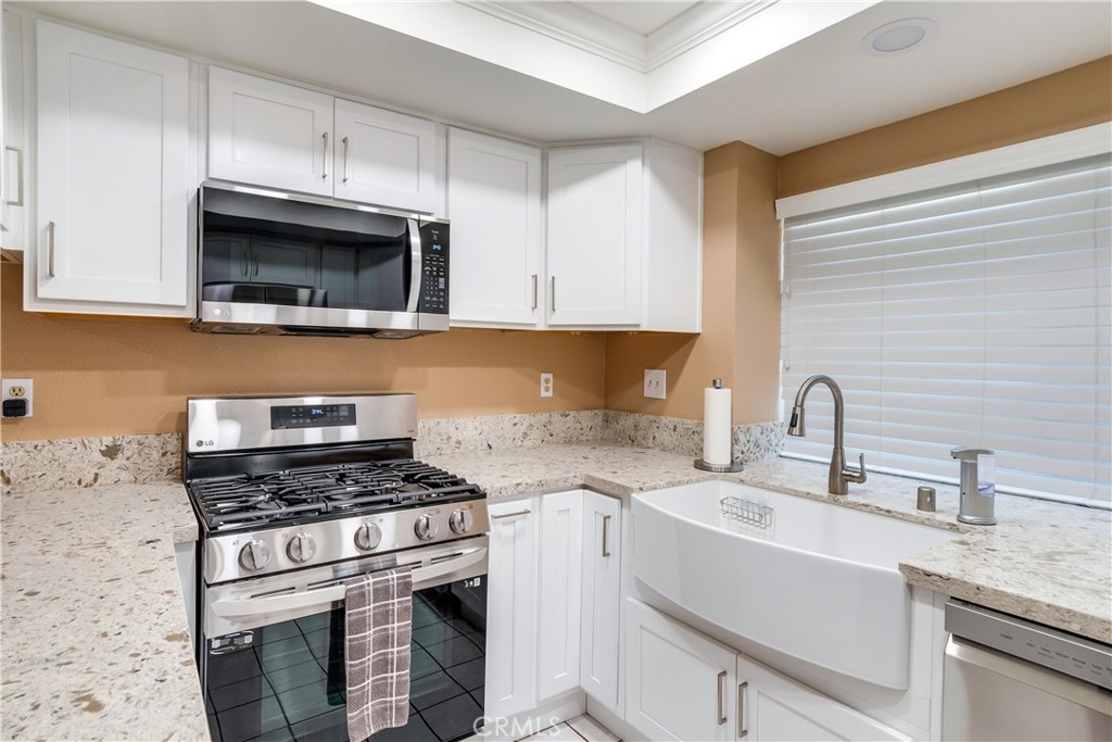 Charming 2 Bedroom, 2.5 Bath home nestled in a Fantastic Location. Welcome to The Gallery. This home features an open floor plan, perfect for family time and entertaining guests. Upgraded Kitchen: The modern kitchen is a delight for any home cook, featuring upgraded quartz countertops, an oversized farmhouse sink, stainless steel appliances, a smart microwave and stove, recessed lighting, white shaker cabinets, a lazy susan, built in spice rack, a pantry all with the popular soft close features. Cozy dining room and good size living room, dual pane windows and a sliding door to your private patio with stamped concrete. This is a great space for enjoying your morning coffee. A guest bathroom conveniently located downstairs and direct access to the two car garage complete with washer/dryer hookups. The comfortable primary bedroom has a private bathroom en-suite with a walk in shower, ceiling fan and a nice size walk in closet. The guest bedroom offers a bathroom en-suite ensuring privacy and convenience with a shower/tub combination. Situated in a great area, this home is close to the freeway for easy commuting, shopping and schools. Community Amenities: Enjoy access to the community amenities, including a pool and spa, providing relaxation and fun. Benefit from low HOA fees while enjoying this well-maintained common areas and greenbelt with a walking path. This home offers the perfect blend of comfort, convenience, and community. Don't miss the opportunity to own this fantastic home in a prime location. Schedule a showing today and make this house your new home!