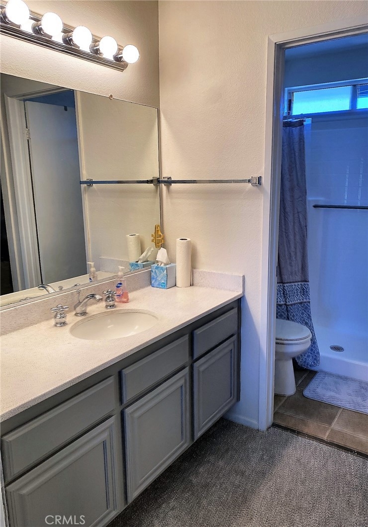 Beautiful condo located in the Gallery in South Corona. This is a nice community with low hoa dues that cover yard maintenance, pool, spa, greenbelts, walking paths, roof and fence maintenance. This is a 3 bedroom, 2 bath, 2 story end unit. Enter into your spacious living room with sider that leads to wood deck patio. Fence was just replaced by HOA, owner paid extra to have a gate installed. Living room leads to the dining room and kitchen. Kitchen was just remodeled with new cabinets with soft close hinges, new quartz countertop, new fixtures, and new dishwasher. There is a dining area and breakfast bar at kitchen. Downstairs has all new vinyl plank flooring and fresh paint. There is a half bath downstairs and direct garage access with laundry hookups in garage. Upstairs has brand new carpet and fresh paint. All bedrooms have newer ceiling fans and 2" faux wood blinds. Master bedroom has attached master bath with walk in closet and shower. New shower doors are on order. Both bathrooms upstairs have new fixtures and tub/shower inclosures that have been reglazed. Owner will leave all appliances including refrigerator and washer/dryer. Owner will be installing new vinyl flooring in upstairs bathrooms to match downstairs flooring. Hurry!
