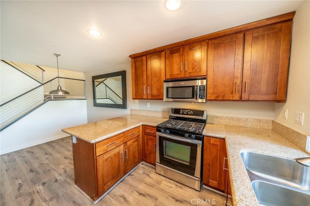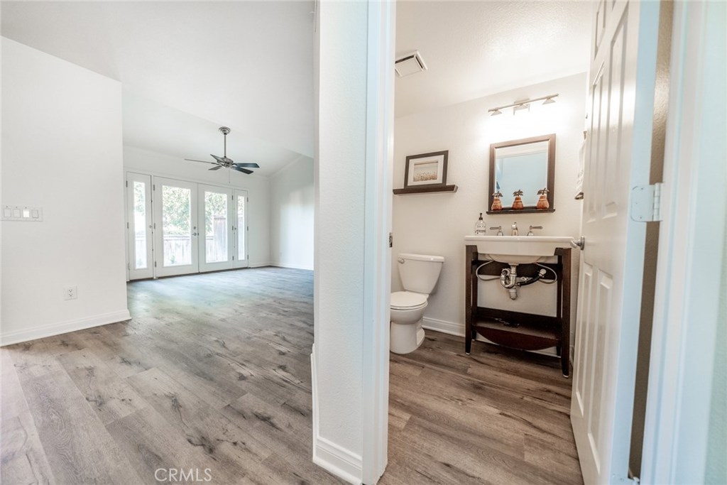 Upgraded Gallery Townhome in immaculate condition. This home features 2 bedroom, 2 1/2 baths, 1110 square feet, built in 1984. New wood plank style, waterproof flooring, new carpet, new paint. Upgraded kitchen with shaker cabinets, granite counter tops and stainless steel appliances, (including refrigerator). Newer windows, Upgraded French doors with side windows, and a remodeled downstairs bathroom. Master bedroom has a super sized walk in closet with organizer. Attached two car garage has a washer and dryer (included). Other improvements include, smart thermostat, and light fixtures, newer central a/c unit, newer water heater, ceilings updated, crown moldings, ceiling fans, plantation shutters and more. Garage has addition cabinets and shelving. Private patio perfect for bbq and dining. Located near the community pool and spa. Walking distance to Centennial High School. No unit directly behind home adds to the desirability, as well as the beautiful view of the mountains.