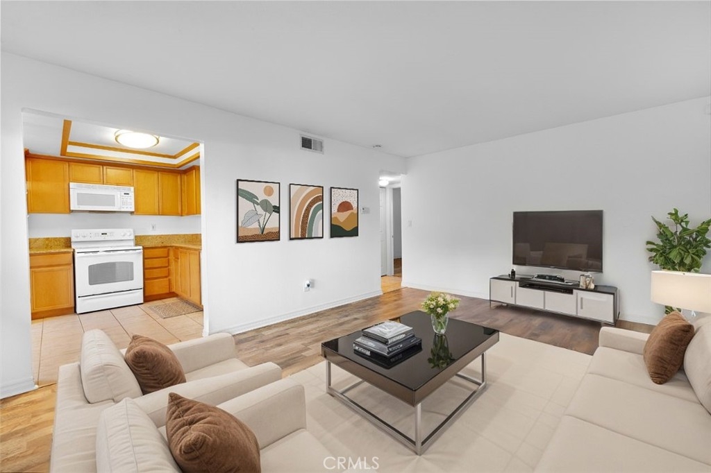 Welcome home to this beautiful condo located in the lakes community of Corona. Upon arriving at the condo, there is a beautiful planter in front of your personal porch. Newer laminate floors greet you in the living room and additional living spaces. The kitchen offers granite countertops and newer cabinetry, with a space for a small dinette table. The bathroom also has been updated with granite and newer cabinets. The bedroom offers a private patio that backs up to Brentwood Park. There is an indoor laundry closet with washer and dryer included. The community is located close to shopping restaurants and easy access to the freeways. Enjoy resort like living with the lake access, pool and spa, tennis courts, and sports courts and so much more.