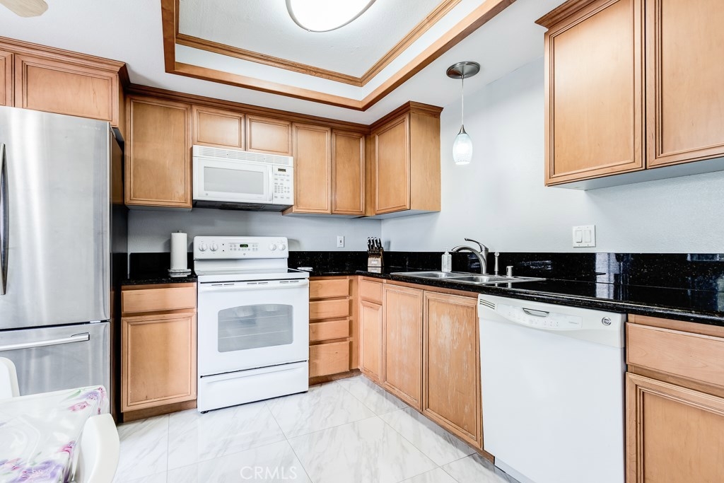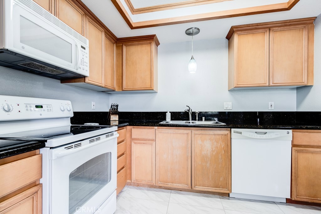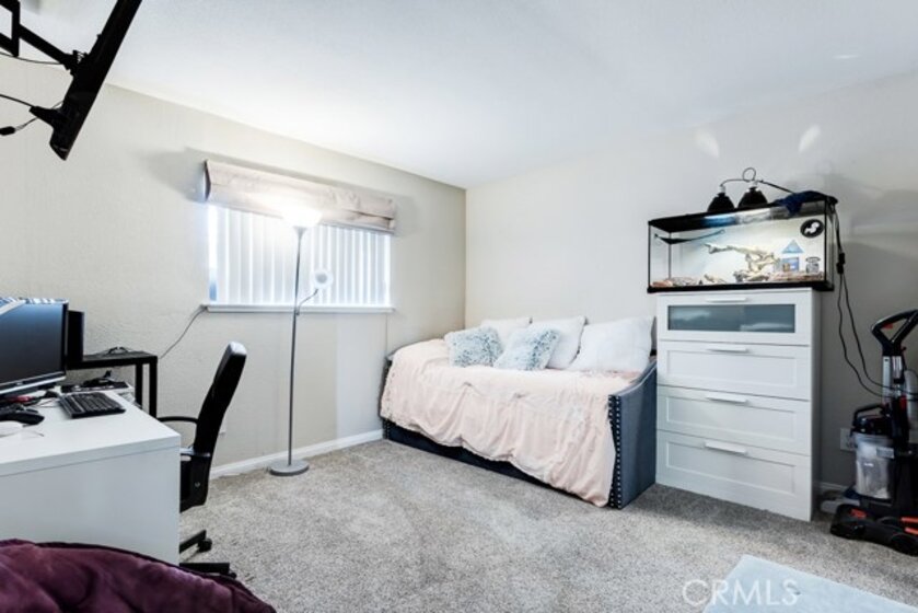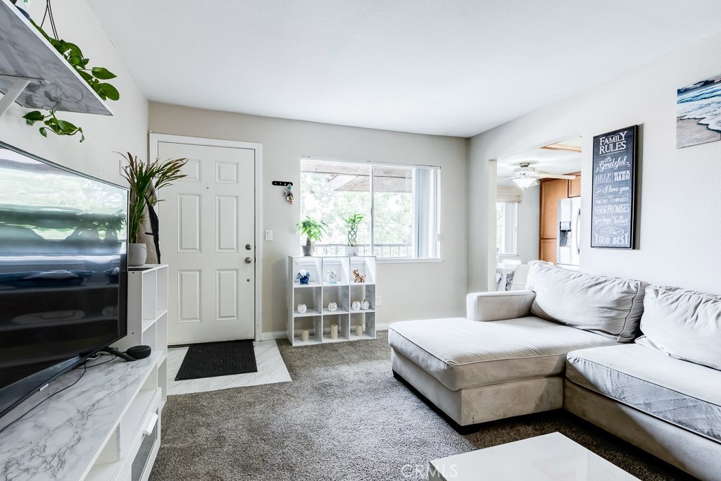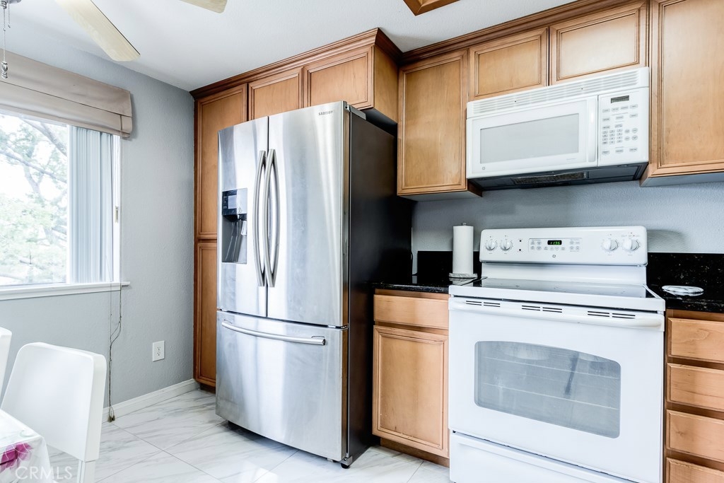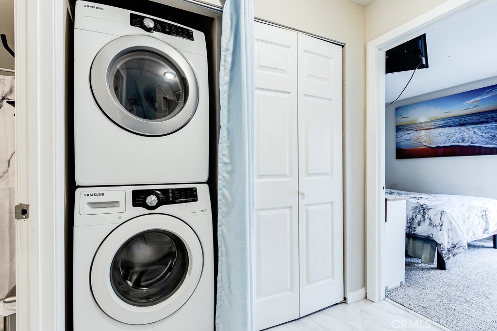 Beautiful Home in the Community of The Lakes of Corona. Upon entry you are greeted by the spacious family room with plenty of natural lighting beaming through the large windows. The kitchen is open and inviting with granite counter tops, new tile flooring and plenty of cabinet space for all of your organizational and storage needs. Stainless steel refrigerator, washer and dryer included! The Bathroom has been remodeled with a granite counter top, framed mirror, lighting fixture, and re-finished cabinets. The master bedroom has a walk-in closet and direct access to the private balcony area. The community has many resort type amenities including lake access, paddle boats, tennis courts, basketball courts, a large swimming pool, BBQ and picnic areas. Each resident has an assigned carport with storage and additional unassigned parking space. Well situated within walking distance to plenty shopping and dining options. Estimated tax rate is 1.1%. Schedule your private showing today!