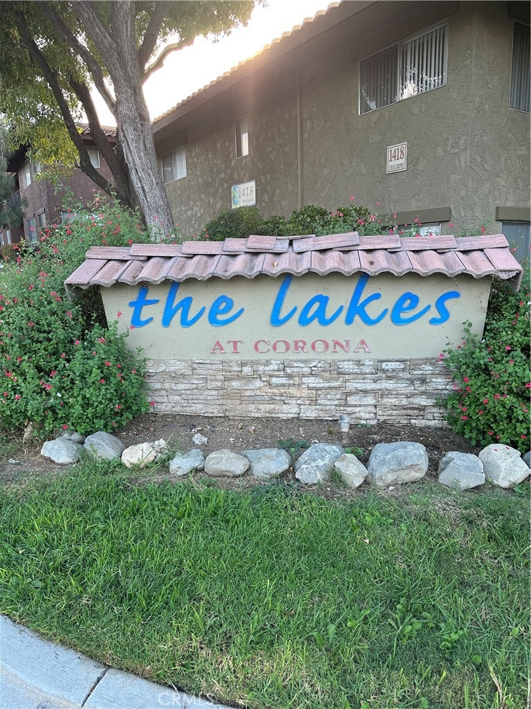 ONE STORY 3 Bedroom, 2 bath Condo with assigned carport & small storage, located at "THE LAKES OF CORONA". Enter into the Large open living room with spacious dinning room, kitchen that has plenty of cabinetsthat have been freshly painted. Master Bedroom has 2 closets and en-suite as well as patio access. Close to the Cleveland national forest. that offer beautiful views. Newl paint throughout, NEW laminated in living room, hallway and master, new bathtub and custom vanities, New WATER Heater & New Dishwater. GREAT corner unit so you only have one neighboor on top and 1 on side, close to parking lot. Both bedrooms are very spacious and have good size closets. Nice charming community with great HOA Amennities.