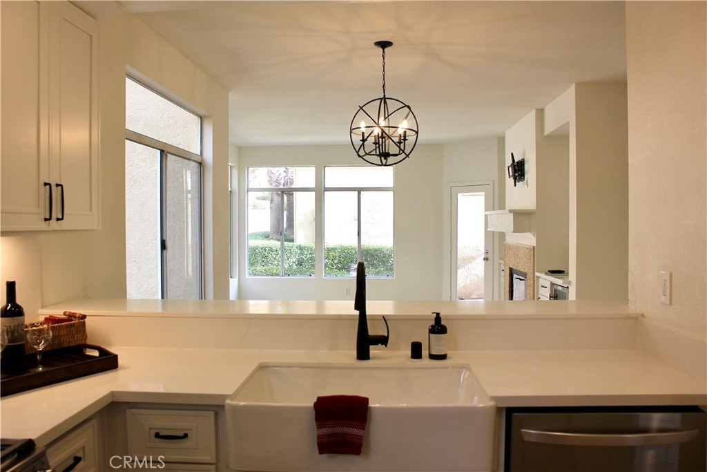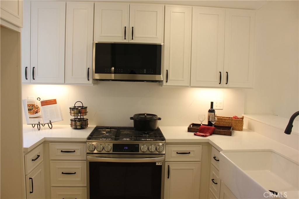 Tastefully Renovated lower level condo located in the desirable hills of the Sierra Del Oro Community. Location, location, location! This gorgeous condo is close to Orange County and features new Elegant Shaker cabinets, Quartz counters (including a full backsplash in the kitchen), under cabinet lighting, a farm sink, new black faucets and brand new LG Stainless appliances. Doing laundry is a breeze with a "like new" full size stackable front loading washer and dryer inside the unit. Parking is convenient with a semi-attached one car garage and one assigned covered carport. This unit is located near the pool and provides the serene view of palm trees, and the hills of the Cleveland National Forest from your patio. Other features: New Water Heater, New shower valves, HVAC system was replaced in the last few years. It is a MUST see!