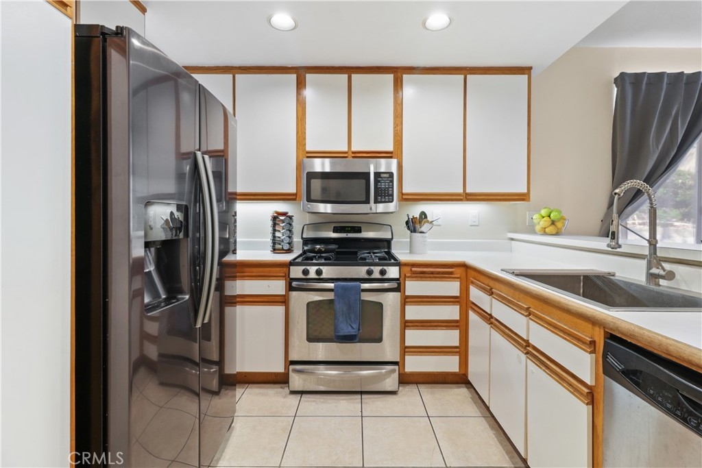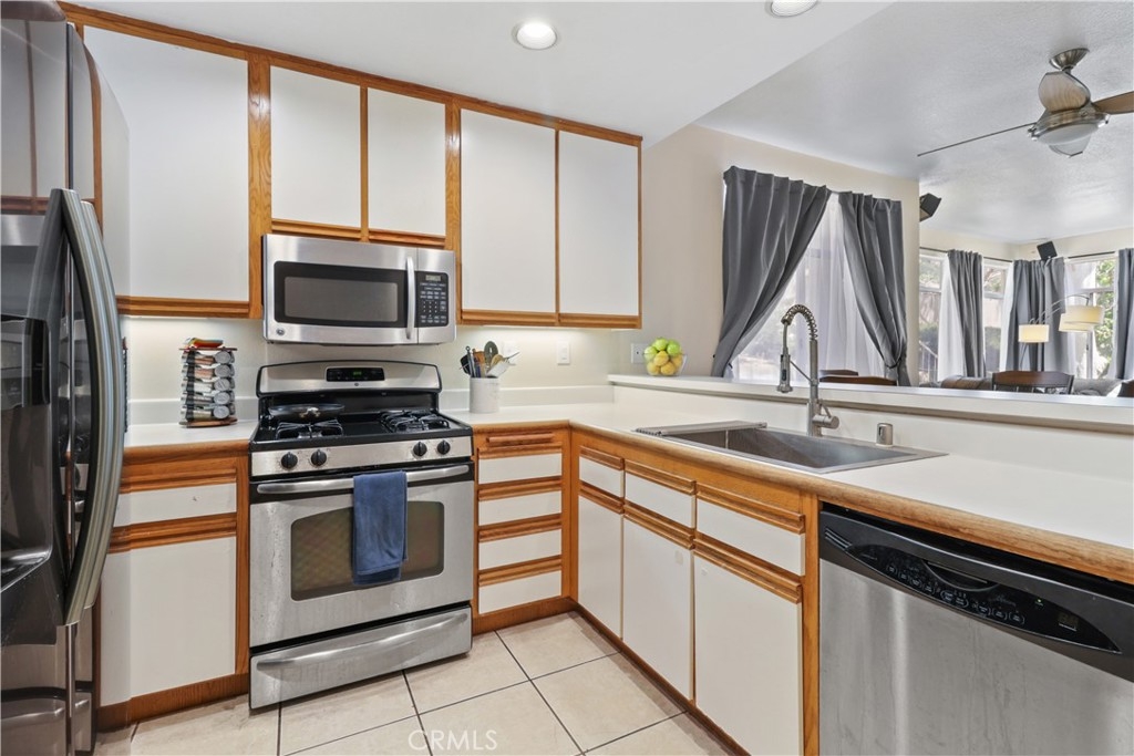 Wow! Spacious ground floor unit with lots of privacy. End unit next to quite green belt. This unit has newer AC, forced air heater, and water heater. Comes with refrigerator, and washer and dryer. Beautiful tile floors, new sink, fire place, and adjustable wall mount for your TV. Indoor laundry. This home features 2 bedrooms and 2 baths with large closets and ceiling fans. It comes with Smart Home features including, CAT-6A ethernet cable run through walls, additional cable in hallway ceiling for future wireless access point, includes networking switch and patch panel. Also comes with ring door bell, smart thermostat, Lutron smart home light switches and hub to connect to Apple Siri or Amazon Alexa smart home controls. A one car garage has opener and rear door access just a few steps to front door. This is almost an attached garage. No need to carry groceries in the rain. Additional assigned carport parking space as well. Walking distance to elementary school and shopping close by!