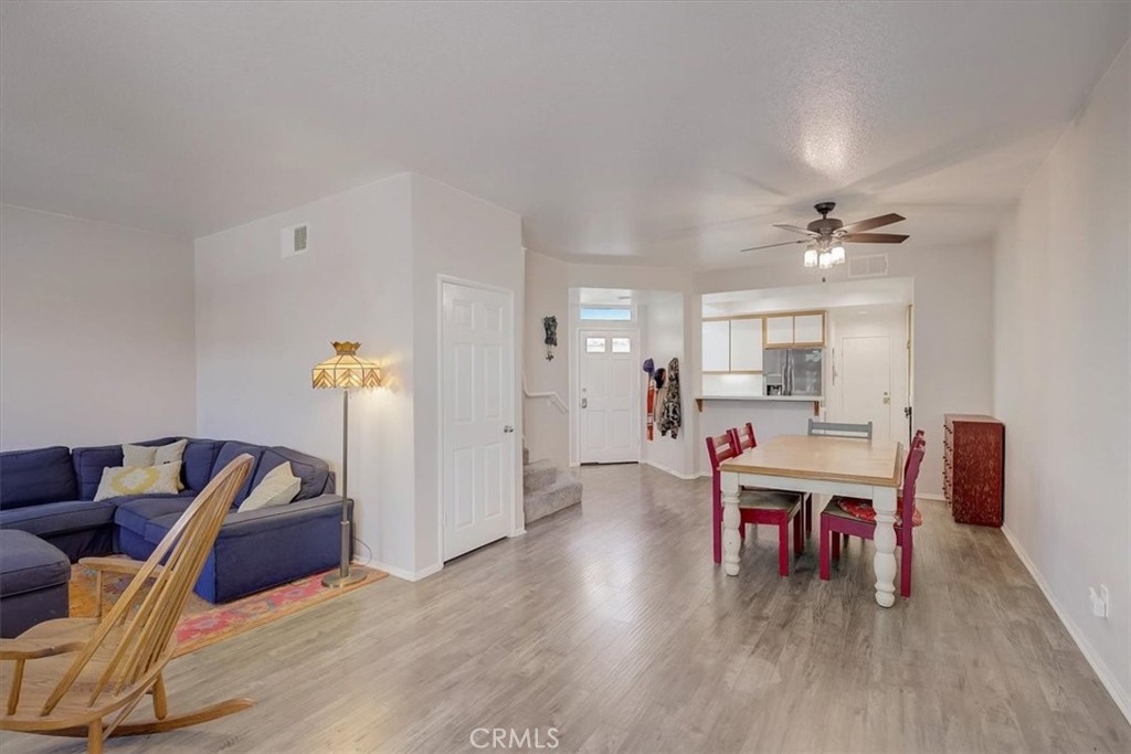 Turn-key 3 bedroom, 2.5 bathroom, condo in the desirable Terraces at Sierra Del Oro community features an attached 2-car garage, a spacious floorplan, and a private patio! The living room offers a fireplace with tile surround and opens to the large dining area with ceiling fan and glass double doors to the patio, and flows into the kitchen with tons of counter space & storage space and a bar overhang. A hall closet, direct-garage access, and a half bathroom complete the 1st floor. All of the bedrooms are on the 2nd floor and have carpet flooring and ceiling fans including the large primary suite with a private bathroom featuring 2 mirrored closets, dual sink vanity, and a shower/tub combo. There is also a full-size hall bathroom for the secondary bedrooms to share. Enjoy the good-sized patio with trees for added privacy & shade! Residents of this community get to enjoy the sparkling swimming pool - perfect for the Summertime! Conveniently located near schools, shopping, dining, and the 91 Fwy!