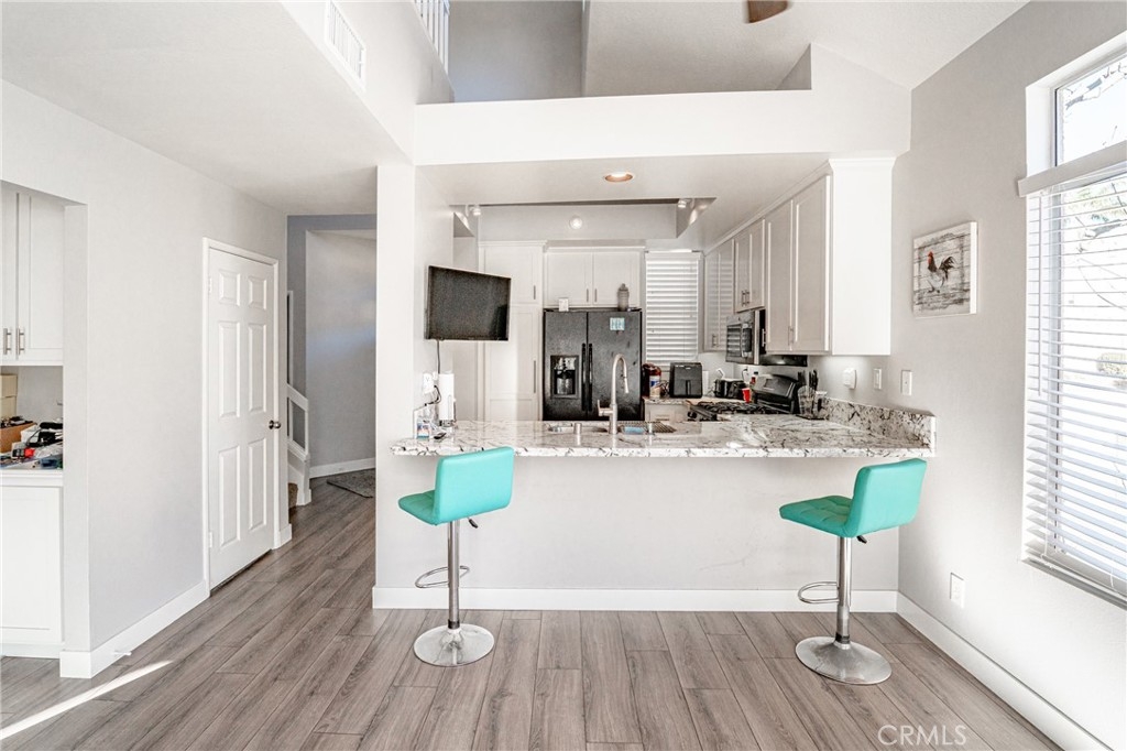 **NEW REDUCED PRICE!! LOCATION, LOCATION, LOCATION** SPACIOUS CONDO LOCATED IN HIGHLY DESIRABLE COMMUNITY "THE TERRACES AT SIERRA DEL ORO". Close to all amenities of life, schools, shopping centers, restaurants, parks, and churches. Home is in ready to move in condition, first floor has laminated wood flooring through out kitchen and living room with an ope concept, spacious living room with grand ceiling and windows, fireplace, balcony area with mountain views, white kitchen cabinets with plenty of storage space, black and white stone counter tops, stainless steel stove, dishwasher, and microwave range, breakfast nook, and dinning area. Both bedrooms and bathrooms are downstairs, spacious guest bedroom, full guest bathroom, Master Suite has a spacious closet with mirror doors, balcony with mountain views, high ceilings and master bathroom. Upstairs is the LOFT area that can be use as a 3rd bedroom. Also Central AC/heating and attached single car garage parking plus 1 carport space. Community features POOL, recreational facility, and gym. Don't miss out.