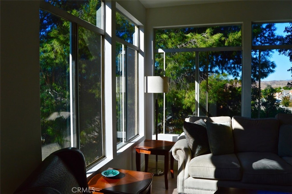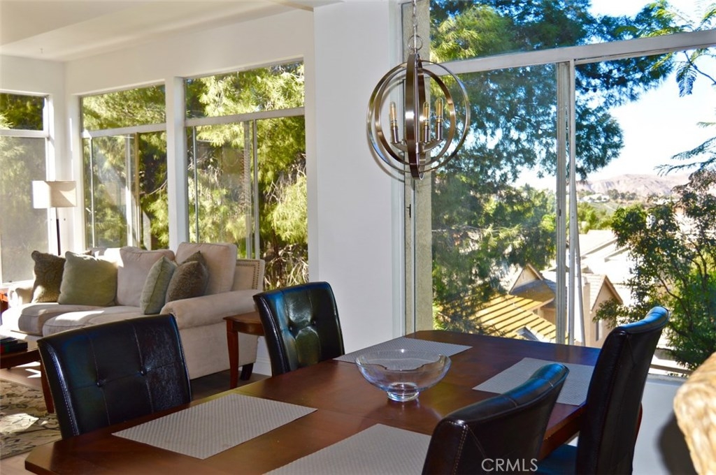 Gorgeous panoramic views of Cleveland National Forest in this secluded, beautifully upgraded townhome. 2 bedrooms plus large upstairs loft (which can be used as a 3rd bedroom, office, or TV/playroom), 2 full bathrooms, 1 car garage, 1 carport. Vaulted ceilings in kitchen, living room, master bedroom, and entry. Spacious master suite with balcony access. Living room with 180° view and balcony access and fireplace. Dining room, kitchen with new stainless appliances and breakfast bar. New wood flooring and carpet. Laundry closet for stackable W/D. Super close to 91/71/241 Fwys and Metrolink and close to OC. Beautifully maintained community with clubhouse, pool area, and landscaping.