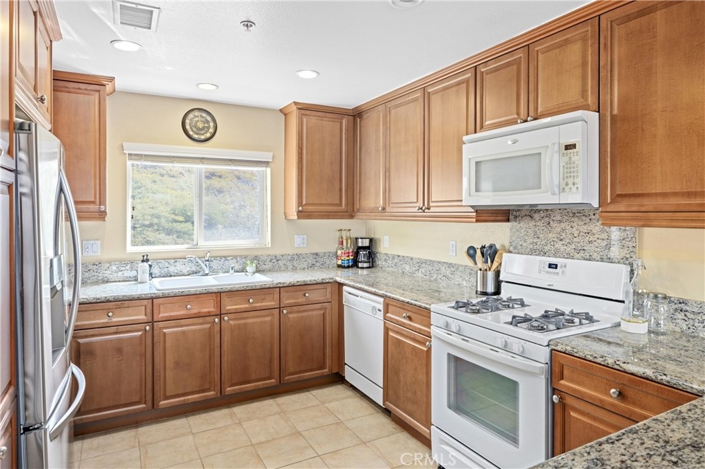 OVERSIZED 2 CAR ATTACHED GARAGE | END UNIT | PANORAMIC MOUNTAIN VIEWS | Welcome to this stunning 3-story end unit condo in the prestigious Sierra Del Oro community along Green River Road—offering the closest commute to Orange County! This beautifully upgraded home combines space, style, and scenic views, perfect for comfortable and convenient living. The ground floor features an oversized and insulated 2-car garage with durable epoxy flooring. Upstairs, enjoy a spacious living room with a fireplace and large windows framing breathtaking mountain views. Step onto the serene patio—ideal for relaxing evenings overlooking the hills. The home is filled with natural light, dual pane windows, recessed lighting, and ceiling fans throughout. The elegant dining room flows into the Chef’s kitchen, featuring granite countertops, upgraded cabinetry, breakfast bar seating, a gas range, dishwasher, and a newer stainless-steel refrigerator. You'll love the open sightlines to the lush green hillside and the community pool and spa area. Upstairs, the expansive primary bedroom features its own private balcony with slider doors opening to sweeping views of snowcapped mountains. The ensuite bathroom includes granite countertops, dual sinks, walk-in shower, privacy door, and a generous walk-in closet. Bedroom two is bright and spacious, perfect as a guest room or home office, with its own mountain views. A third full bathroom with a tub/shower combo is conveniently located in the hallway. A separate laundry room includes a washer and dryer. The main floor also offers an oversized powder room with a pedestal sink. Just steps from your front door, enjoy the community pool, spa, and shaded lounge area—perfect for entertaining or relaxing. ENERGY EFFICIENCY features include recessed lighting, dual pane windows, ceiling fans throughout, Tesla EV Charger and cable. COMMUTING: Enjoy the short commute off Green River exit - 1st exit off OC with easy access to 91 Expressway, 241 Expressway, 71/55/57/15. NEARBY: Shopping, dining, parks, golf course, and hiking trails. With its ideal location and spectacular views, this home is a must-see!