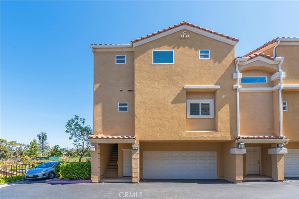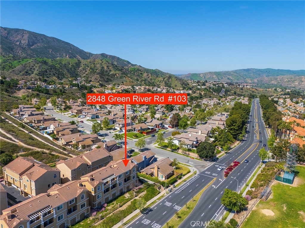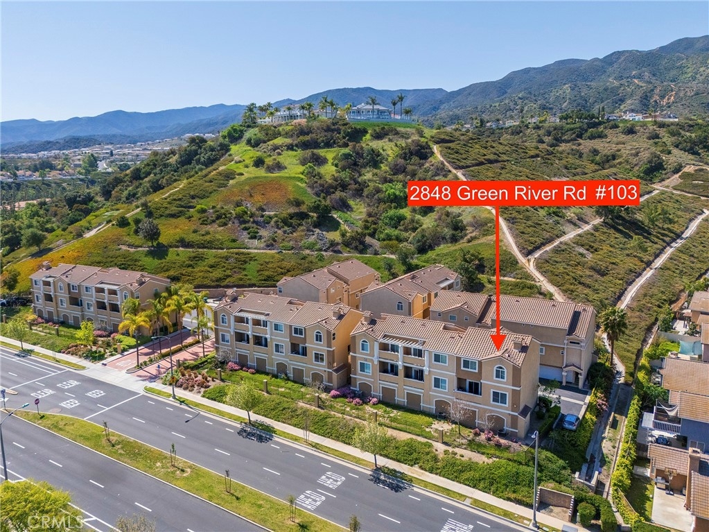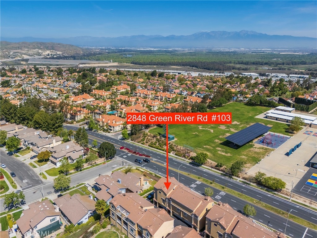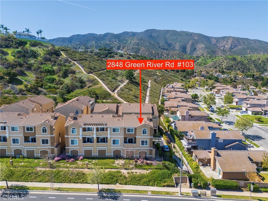 A rare chance to buy a stunning property with absolutely gorgeous views in the Sierra Del Oro area of Corona. There are only 19 units in "The Village at Green River" community and this END UNIT has one of the best views available. READY TO MOVE IN, built in 2008, this almost 1700 sqft property features 2 Primary suite's, 2.5 bathrooms and comes with a unique OVERSIZED garage (approx. 850 sqft of space) to give you more living space for a mancave/she shed or more room for parking, even a truck or 2 trucks! The main entry to the house is above the garage which consists of an open floor plan with high ceilings, a half bathroom, laundry room, spacious kitchen with upgraded stainless steel appliances and a breakfast bar. Cozy living room with a gas fireplace. Large duel pane windows and the private balcony bring in a ton of natural light with gorgeous views of the city & mountains. The upper level has TWO Primary Bedrooms & Two bathrooms. Both bedrooms provide an attached bathroom suite with two closets. The community features pool/spa and a lovely sitting area. But Best of all is the LOCATION! Close proximity to Orange County, major highways and shopping.
