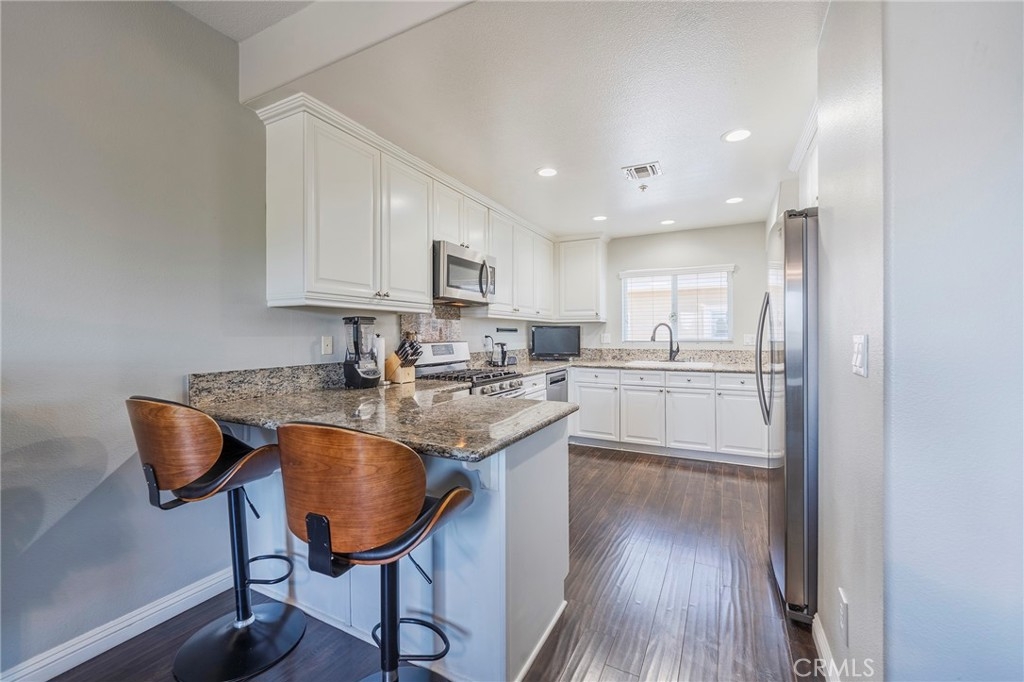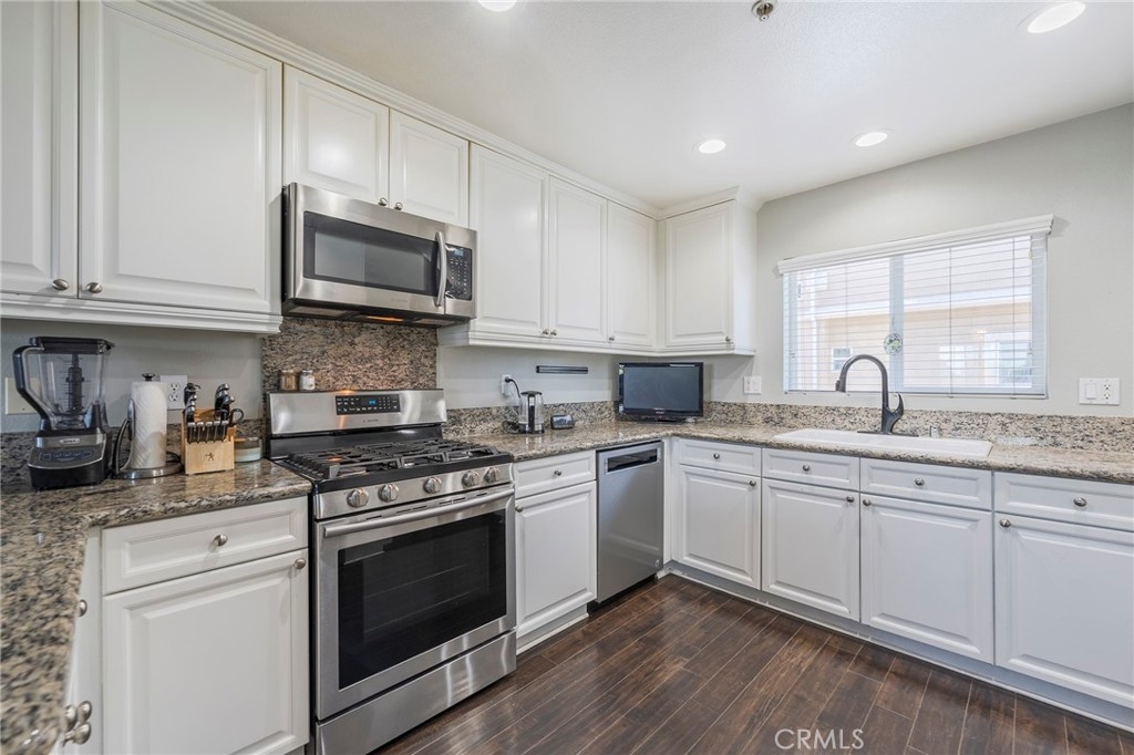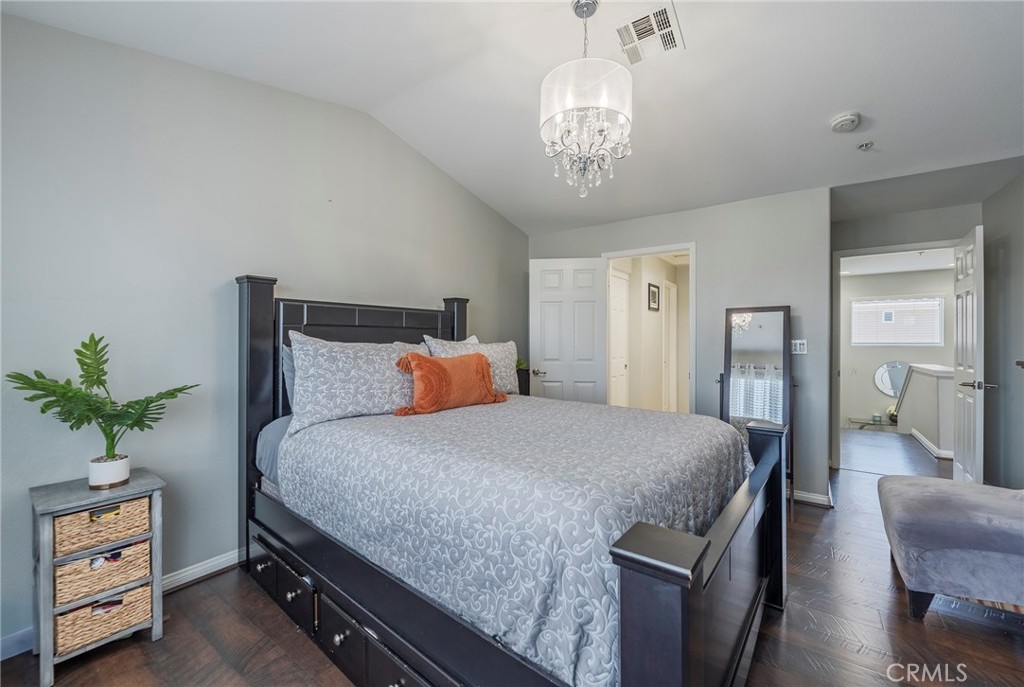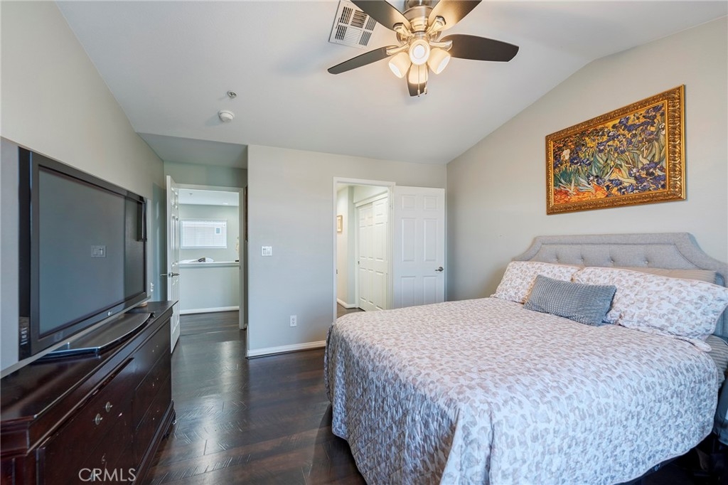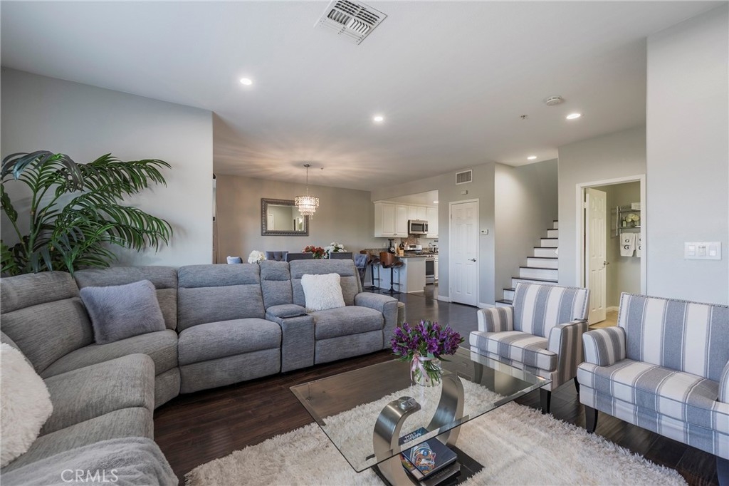 A rare chance to buy a stunning property with absolutely gorgeous views in the Sierra Del Oro area of Corona. There are only 19 units in "The Village at Green River" community and this END UNIT has one of the best views available. READY TO MOVE IN, built in 2008, this almost 1700 sqft property features 2 Primary suite's, 2.5 bathrooms and comes with a unique OVERSIZED garage (approx. 850 sqft of space) to give you more living space for a mancave/she shed or more room for parking, even a truck or 2 trucks! The main entry to the house is above the garage which consists of an open floor plan with high ceilings, a half bathroom, laundry room, spacious kitchen with upgraded stainless steel appliances and a breakfast bar. Cozy living room with a gas fireplace. Large duel pane windows and the private balcony bring in a ton of natural light with gorgeous views of the city & mountains. The upper level has TWO Primary Bedrooms & Two bathrooms. Both bedrooms provide an attached bathroom suite with two closets. The community features pool/spa and a lovely sitting area. But Best of all is the LOCATION! Close proximity to Orange County, major highways and shopping.