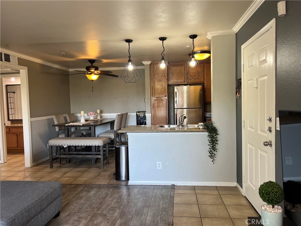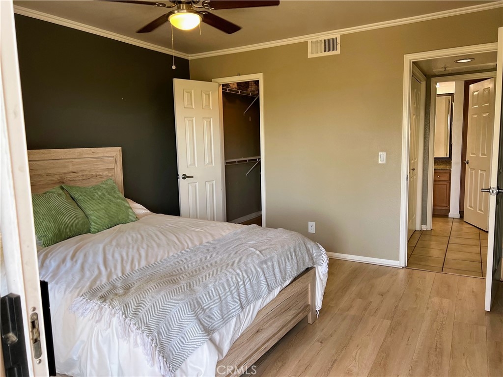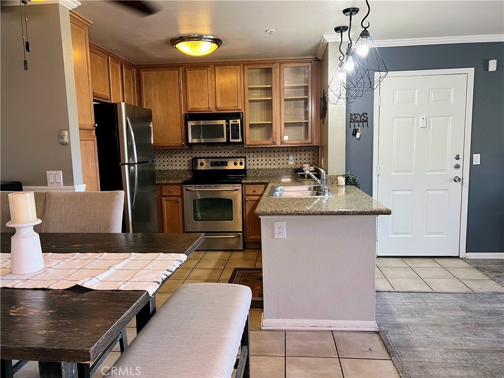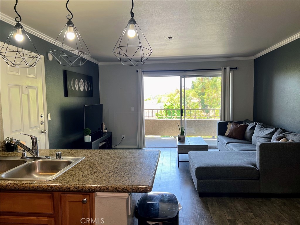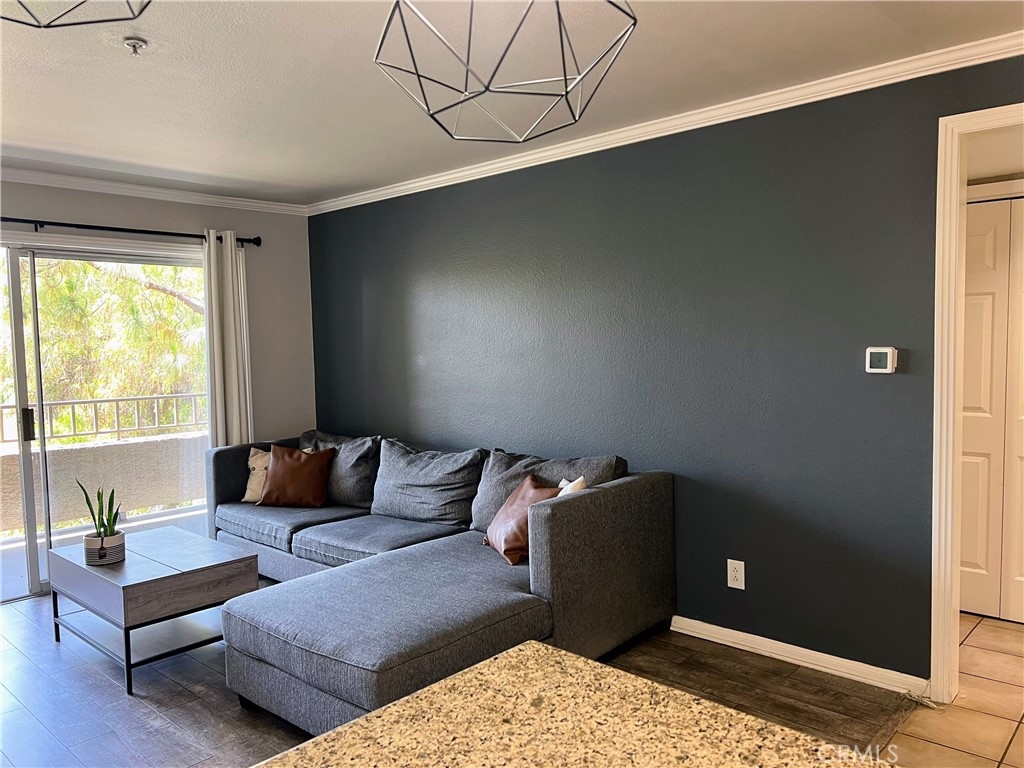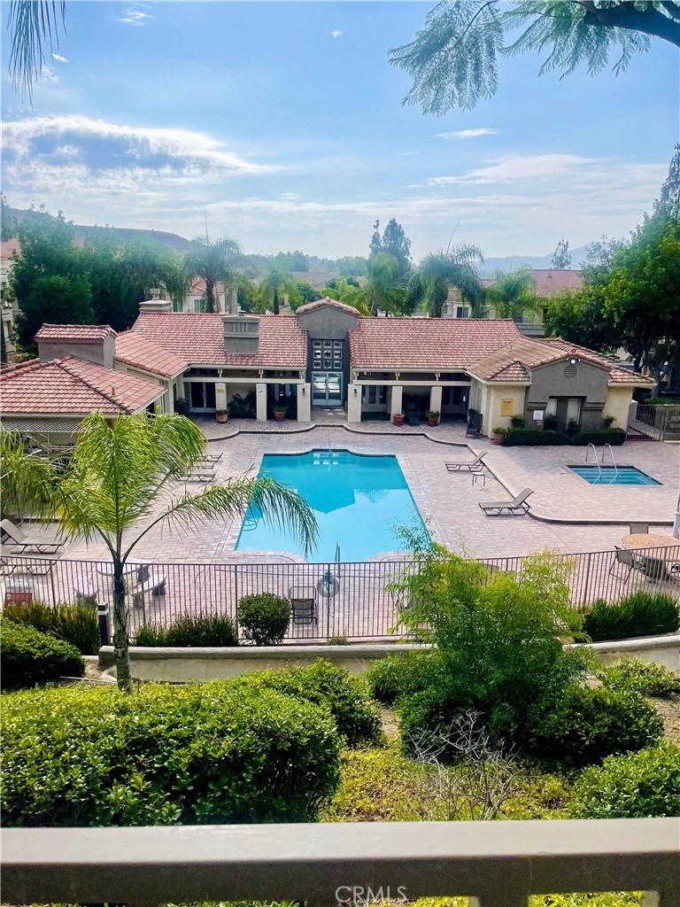This well kept one bedroom, one bathroom unit has a balcony that stretches the length of the property with views of the Corona Hills. Two sets of sliding doors, one in the living room and one in the bedroom, give the property plenty of natural light and make it easy to utilize the balcony for extra living space. In unit washer and dryer are tucked away in the hall closet along with storage space. You'll find more storage in the bathroom and even a storage closet on the balcony. The bedroom has a walk in closet with a few built ins. Ceiling fans in both the living room and bedroom help to keep the unit cool when not using the air conditioning. Your parking garage is located under the unit for easy accessibility. The community has ample parking, a pool, two jacuzzies, barbeques and a clubhouse for hosting events.