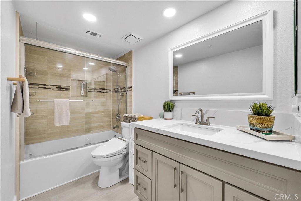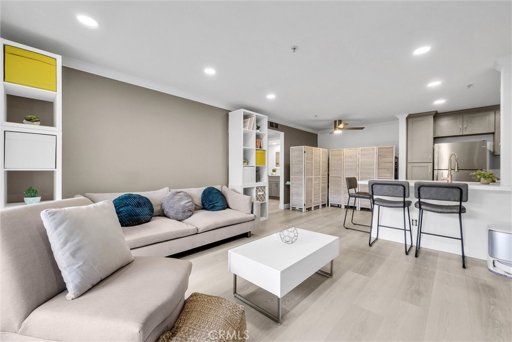 Welcome to 1010 La Terraza Cir Unit 102, a beautifully updated 1-bed, 1-bath condo in the Triana gated Corona Hill community. This first-floor home offers 642 sq ft with an open floor plan, modern upgrades, and a warm, inviting feel. Renovations include vinyl flooring throughout, new baseboards and crown molding, recessed lighting, a new stainless steel ceiling fan, plus custom touches like a master bedroom wall molding frame and barn door closet. The kitchen was fully remodeled with quartz countertops, stylish tile backsplash, new cabinets, sink, faucet, garbage disposal, and range microwave. The bathroom was recently updated with new tile, tub, glass, and refinished cabinets. Added functionality includes extra electrical outlets (three in the garage, one in the patio storage), new laundry inlets, water line to fridge, and hookups for a robotic vacuum system. The private patio and storage room, featuring recessed lights, extend the living space outdoors. The garage, assigned to the unit, is deep enough for a car plus storage or a small workshop, with outlets and lighting upgrades unique to this home. The building was recently painted, and community amenities include pools, spas, gym, BBQs, and a clubhouse. HOA dues are $351.98 per month and cover water and trash. This move-in ready condo combines modern design, thoughtful upgrades, and resort-style amenities in a highly desirable location. let’s make a deal!