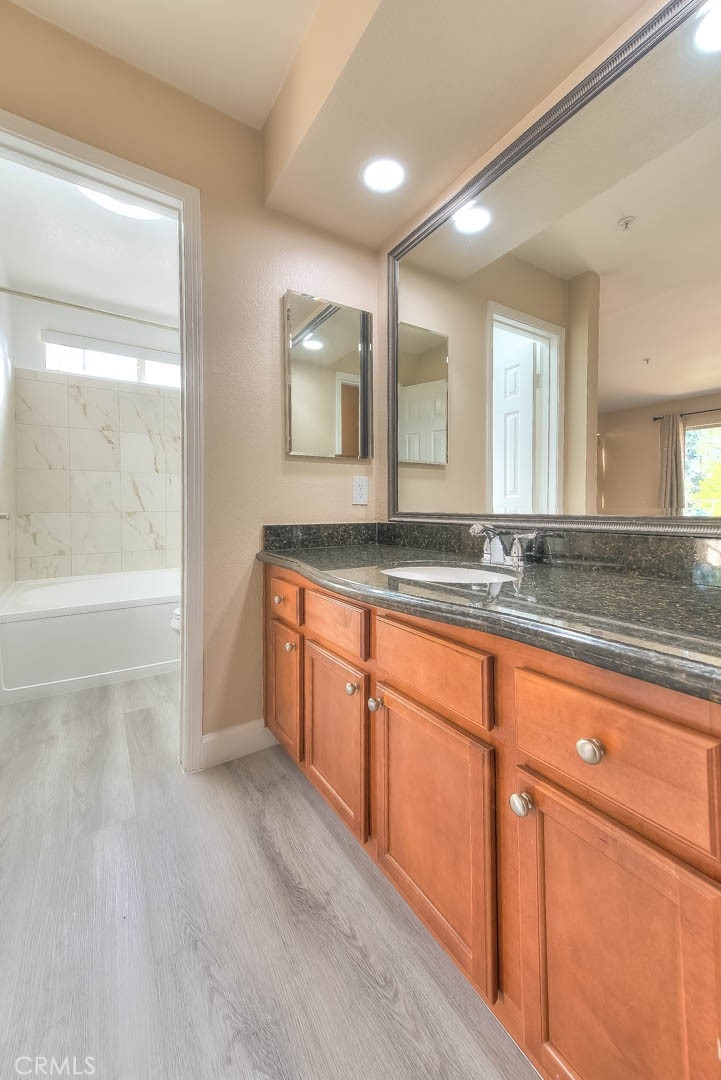 As you enter, you'll be greeted by an inviting living space that radiates an air of tranquility. The expansive windows allow natural light to dance through the rooms, creating an atmosphere that feels both airy and cozy. The open-concept design effortlessly connects the living and dining areas, providing the perfect backdrop for entertaining guests or simply unwinding after a busy day. The well-appointed kitchen is a chef's delight, featuring state-of-the-art appliances, sleek countertops, and ample storage space. Whether you're a culinary enthusiast or someone who enjoys casual dining, this kitchen is sure to inspire your inner chef. The master bedroom is a sanctuary of relaxation, with a generously sized layout and an en-suite bath that exudes elegance. Picture yourself waking up to the gentle sunlight streaming in, offering a perfect start to your day. The second bedroom is equally charming, providing a versatile space that can be tailored to your unique needs. Step outside onto your private balcony, where you can savor a morning coffee or unwind with a glass of wine while soaking in breathtaking views of the surrounding area. The condominium complex itself boasts meticulously landscaped grounds, creating a serene environment that invites residents to connect with nature right at their doorstep. This condominium is not just a place to live; it's a community that fosters a sense of belonging. Residents have access to amenities that cater to their well-being, including a fitness center, a sparkling pool, and communal spaces where neighbors can come together and forge lasting connections. Conveniently located in the vibrant city of Corona, this condominium offers the perfect blend of urban convenience and suburban tranquility. Explore nearby parks, dining establishments, and entertainment options, all within reach of your new home. Embark on a journey of elevated living in this 2-bedroom, 2-bath condominium – a place where modern comforts and heartfelt warmth converge to create a home that truly speaks to your soul. Welcome to a life of excitement, comfort, and unparalleled charm.