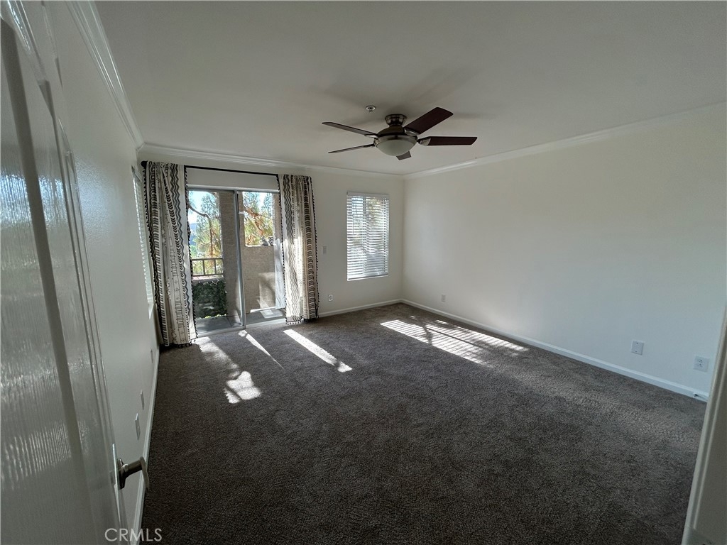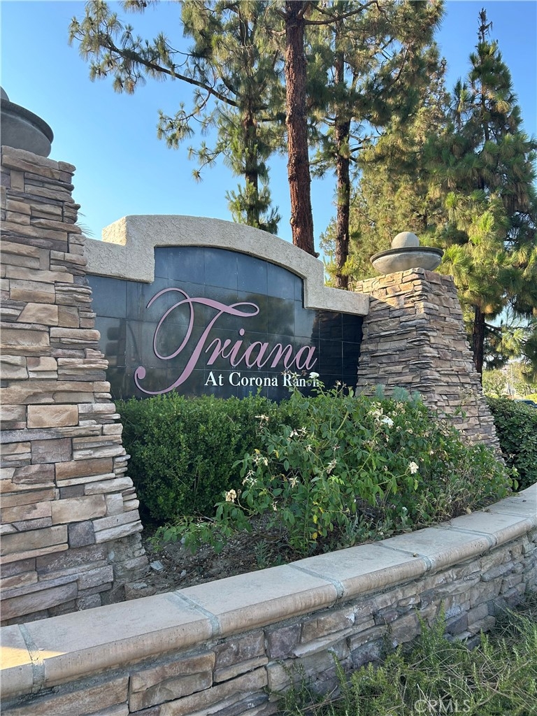 Cute condo located in the gated community of Triana in Corona. 2nd floor unit with private patio in great location of the community with gorgeous mountain views. Fresh paint in living area, kitchen, hall, bedroom and bathroom. New carpet in living area and bedroom. Kitchen cabinets were recently painted in a contemporary gray. Newer shower enclosure in contemporary colors. Crown moulding in living area, kitchen and bedroom. Granite countertops in kitchen and bathroom. Indoor laundry area in hallway. One car extra deep garage with storage racks for additional storage. Storage area on balcony. Easy access to the I-15 and SR-91 freeways.