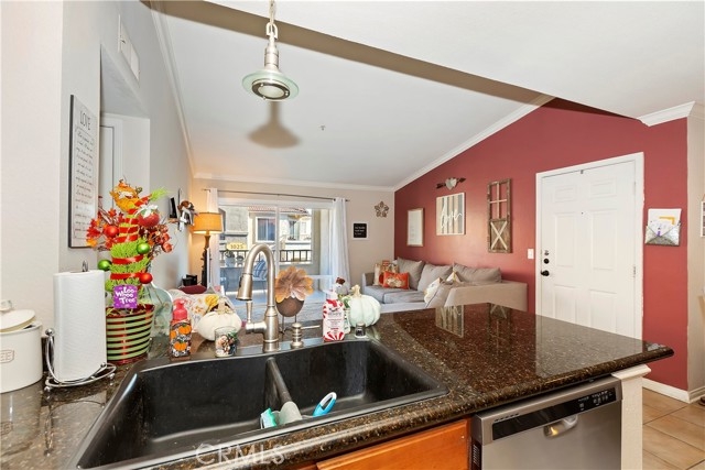 Beautifully maintained condo in a gated community in Corona. This top floor condo has everything you need, with a living room that has crown molding, perfect for entertaining your guests. The kitchen has been remodeled with granite countertops, black sink, upgraded cabinets, tile flooring and stainless steel appliances. The dining room has plenty of room with tile flooring and a ceiling fan! The main bedroom has carpet flooring, walk-in closet, and bathroom with a granite vanity top and an oversized tub/shower. There is a private balcony off the main bedroom with a beautiful view of the hills behind. The additional bedroom has carpet flooring, with beautiful mirrored closet doors, and a slider to the balcony. The additional bath also has a granite vanity top and tub/shower. The home has two balconies, perfect for entertaining and enjoying the views of the Corona Hills. Beautiful new windows and 3 new sliders were installed last year and a new A/C & heater approximately 3 years ago. You'll appreciate the inside laundry area complete with the washer & dryer. There is a 1 car garage that has plenty of storage space. The HOA has many great amenities including pool, 2 spas, bbq area, gym and clubhouse. There is also a car wash station on site! Don't miss this one!