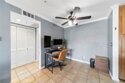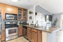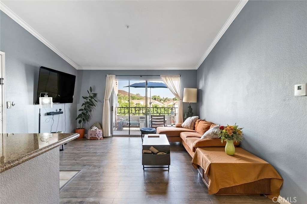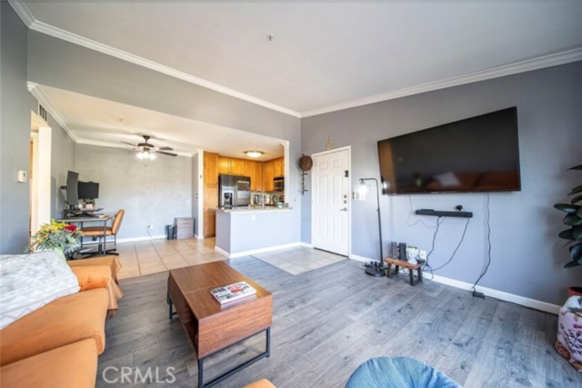 Welcome to your new sanctuary in the heart of Corona Ranch! This stunning condo, nestled within the coveted gated Triana Community, is ready to welcome you home with open arms. Prepare to be captivated by the impeccable and stylish finishes throughout. From the vaulted ceilings in the front living room to the brand-new, waterproof neutral distressed laminate flooring, every detail has been carefully curated to create a space that exudes warmth and sophistication. Step out onto the balcony to the breathtaking views of rolling ranch hills. Inside, the upgraded eat-in kitchen is a chef's dream, boasting gold-speckled granite countertops, stainless steel appliances, and honey maple-colored cabinetry. Retreat to the spacious bedroom flooded with natural light, complete with a ceiling fan. The large bathroom features a shower/tub combo, granite countertop, and maple-colored vanity. The amenities don't end there! This upscale community offers a plethora of leisure facilities, including a pool, spa, fitness room, BBQ area, and clubhouse. Conveniently located close to schools, freeway access, and shopping, this is more than just a home—it's a lifestyle. Don't miss your chance to make this gorgeous condo your own.
