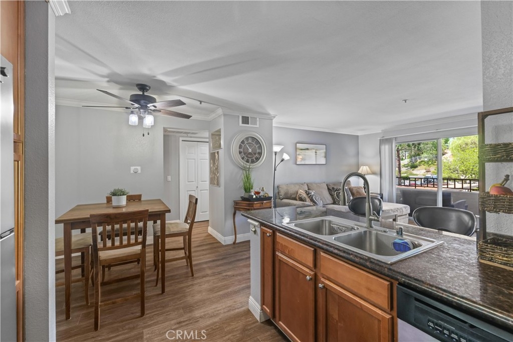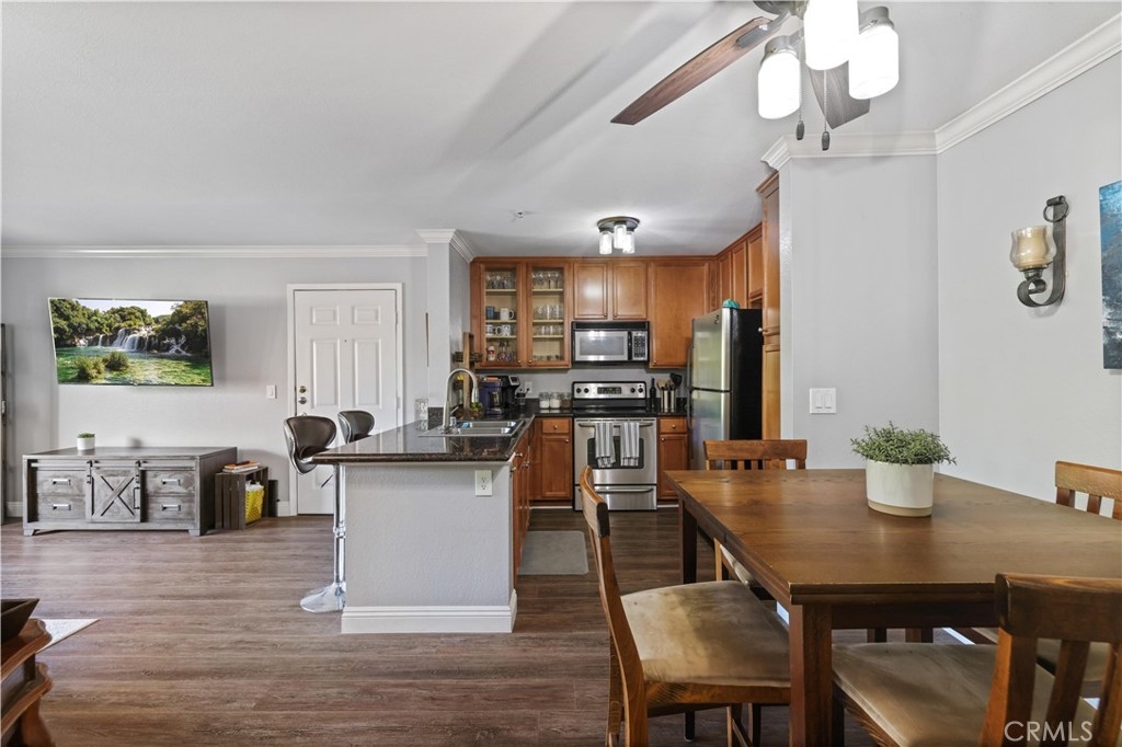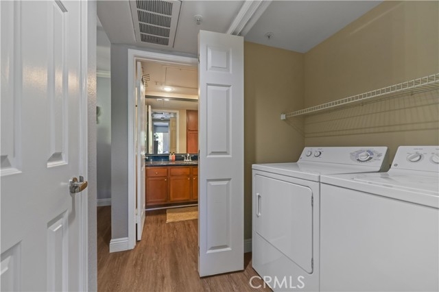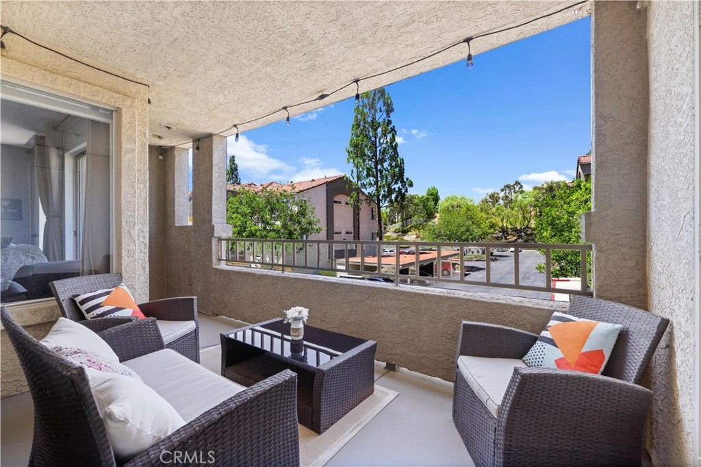 Conveniently located in a wonderful area of Corona and includes many amenities. The condo lies within the quiet gated community named Triana at Corona Ranch and steps away from pool, spa, BBQ area, clubhouse, gym, greenbelts, and fantastic views. This beautiful 1 bedroom and 1 bath condo is located on the 2nd floor and equipped with its own indoor laundry space, plenty of storage throughout, an extended balcony from bedroom to living room and 1 parking space. Property has been upgraded with wood flooring, upgraded kitchen and bathroom. The minimal HOA due pays trash, water sewage, common area, roof, exterior painting, and plenty of guest parking spaces. Are you ready? Let's get moving!
