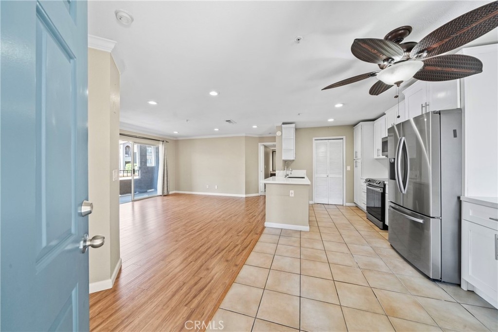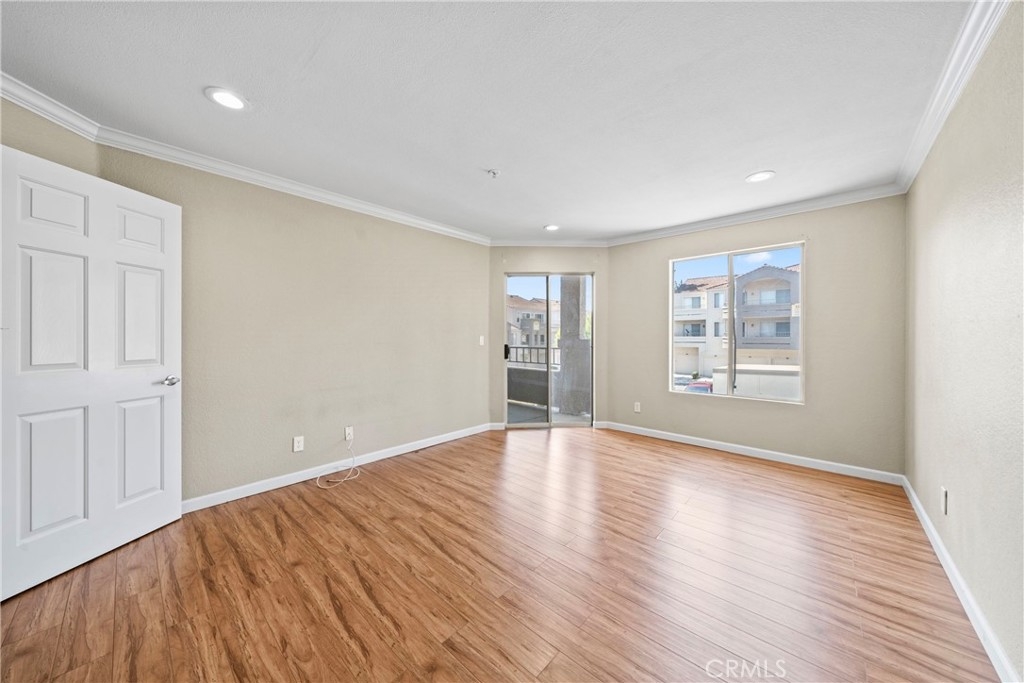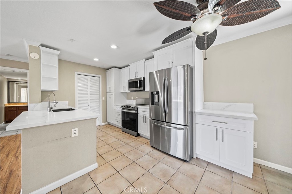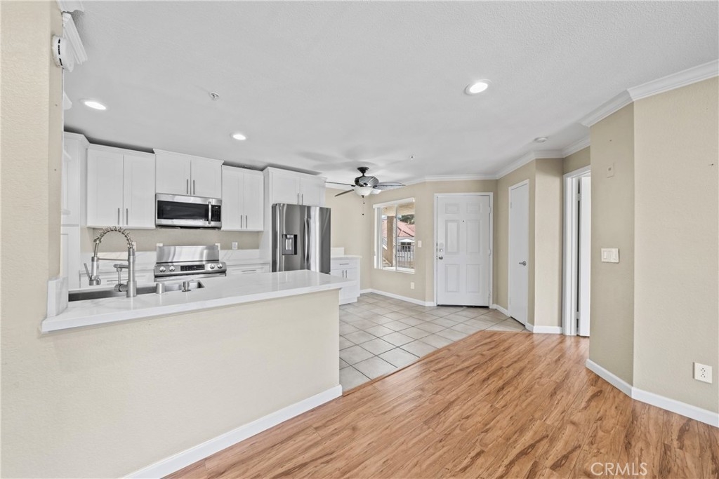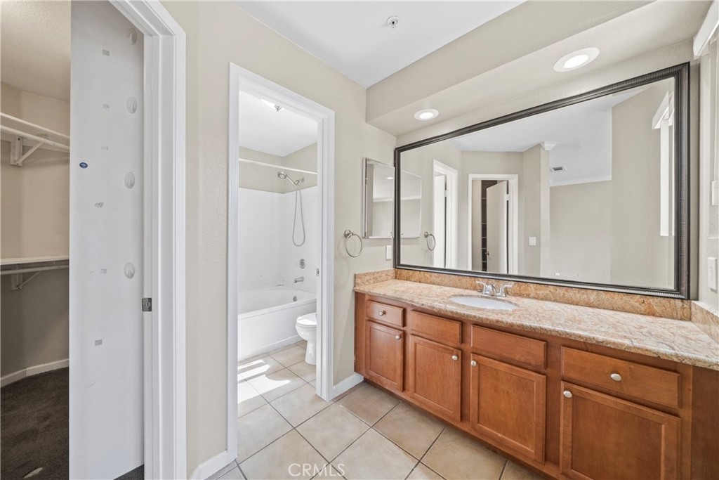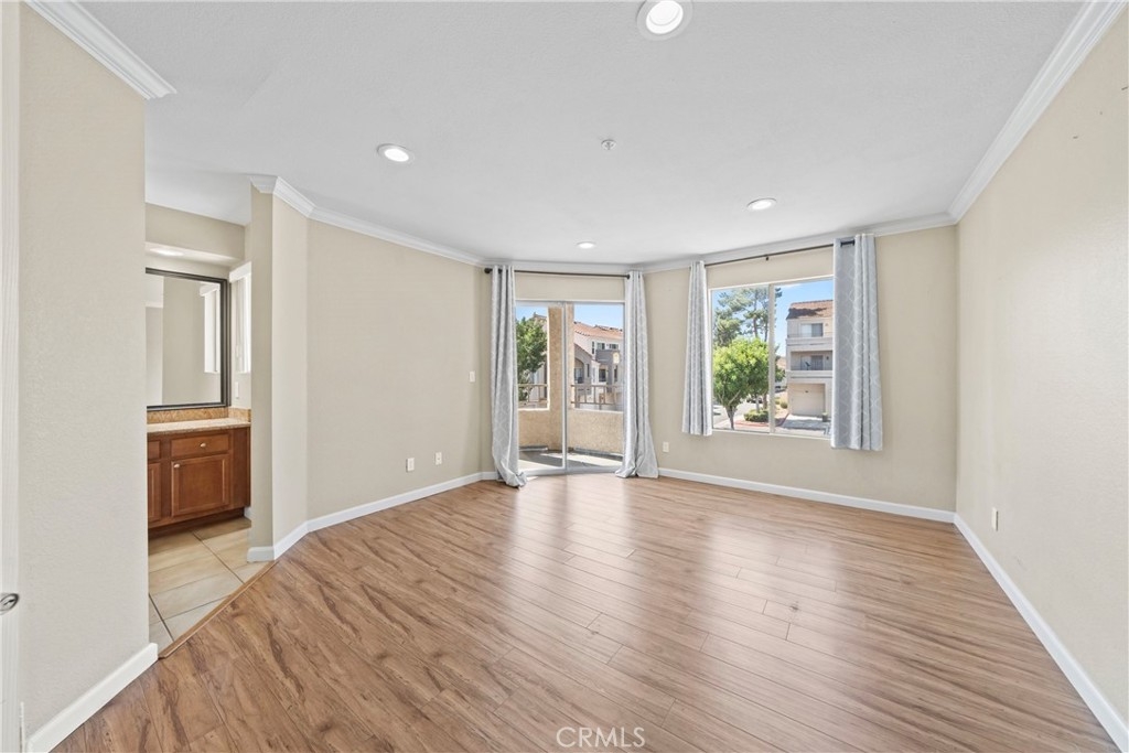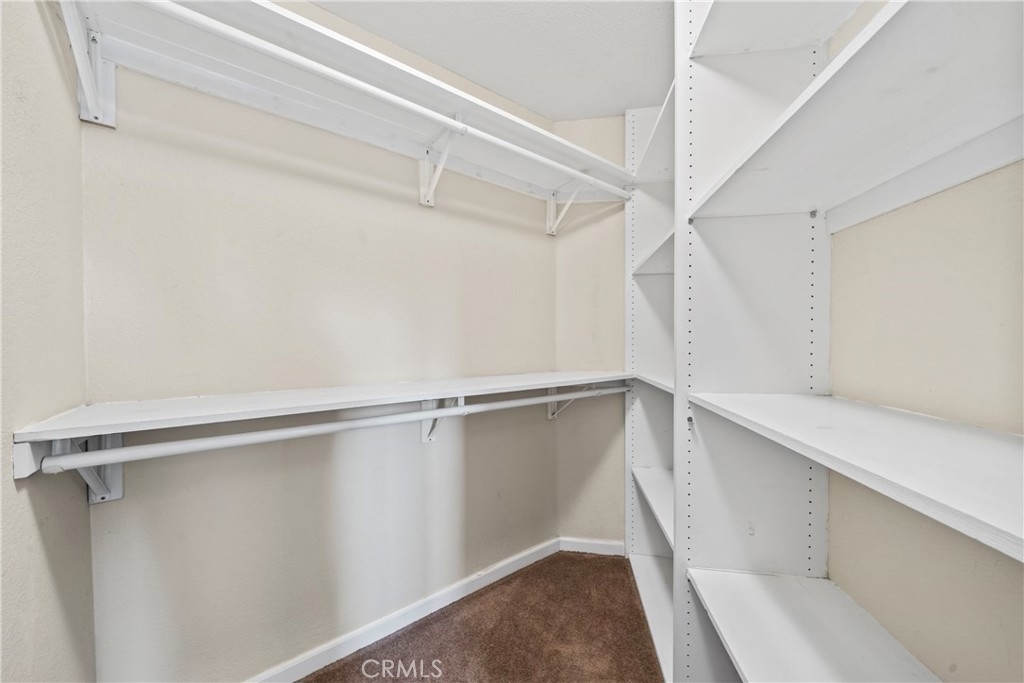 Come in and discover an opportunity that checks all the boxes: location, layout, and potential. Located in the private gated community of Triana at Corona Ranch, this 2 bedroom, 2 full bath corner unit condo offers a great layout with dual primary suites, each with its own walk-in closet and private balcony access, a rare find in this price point. With just over 1,060 square feet, the space is open and functional, featuring laminate wood flooring, central air controlled by a smart thermostat, and in-unit laundry with washer and dryer included. The kitchen, recently updated with white granite countertops and stainless steel appliances, leaves room to easily add your personal touch and value with some light cosmetic upgrades. Complete with a private garage plus a permitted uncovered parking space, this home blends functionality with everyday ease. The Triana HOA includes water, trash, and access to amenities like the swimming pool, spa, BBQ area, and outdoor lounge space. Conveniently located near parks, local shops, and major freeways. Whether you're looking to get into homeownership or add to your portfolio, this is a chance to own in one of Corona's most sought-after neighborhoods.