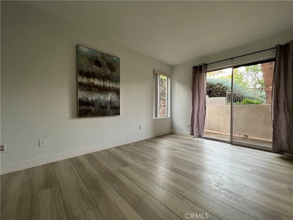 The Seller reduced $4000 for buyer to purchase the new refrigerator and washer/dryer. Gorgeous 2 Bedroom end unit Condo on the first floor in the gated Triana Community. Great location with gorgeous greenbelt views! Light & Bright Open Floor Plan. Kitchen with granite counter tops, maple cabinets, breakfast bar and dining Room with ceiling fan. Large Living Room with Balcony connects to bedroom. Beautiful view next to the park. Master Bedroom with its own Balcony. Laundry closet in the unit. Detached one car garage and plenty of open parking. Community features clubhouse, gym, pool, spa, BBQ areas, sand volleyball court. Close to 91 & 15 Freeways, shopping, restaurants & schools. New Paint and hard floor.