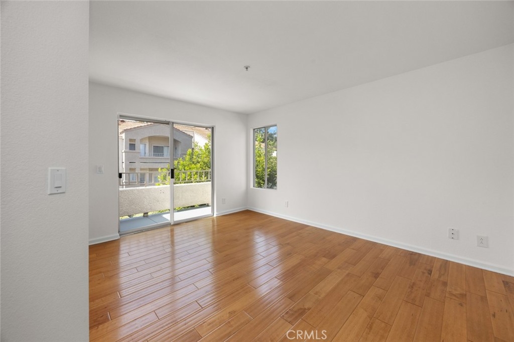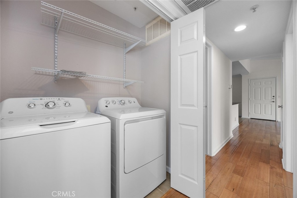 Welcome to this beautiful move-in ready freshly painted 2 bedroom 2 bath condo located in the gated community of Triana. Top floor, end unit priced to sell! This condo boasts 2 balconies with additional storage. Enter into your spacious living room and walk out to your private baloney. Hard wood floors throughout unit. Kitchen comes with granite counter tops and all the appliances. Indoor laundry located in the hall. Primary bedroom has on-suite bath with walk in closet and a private baloney to enjoy. The unit also has an extra long garage. Parking garage has enough space to park one full size car and a motorcycle plus storage space. Enjoy the amenities at the complex which include a sparkling community pool, spa, club house, gym, and a barbecue area. Your HOA dues covers the water, gas and trash. Copy our Matterport link to your browser to get a virtual tour. https://my.matterport.com/show/?m=Qwpc2Jaofmp&mls=1