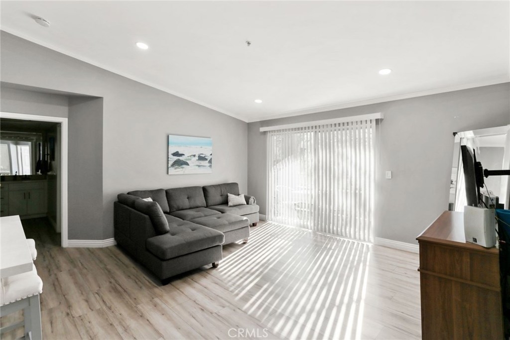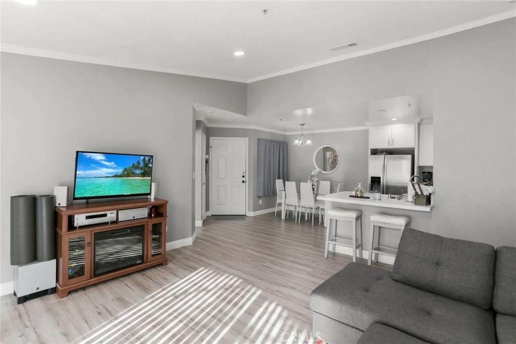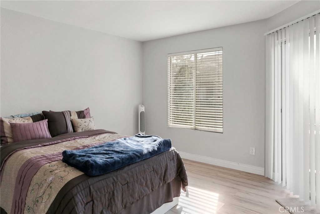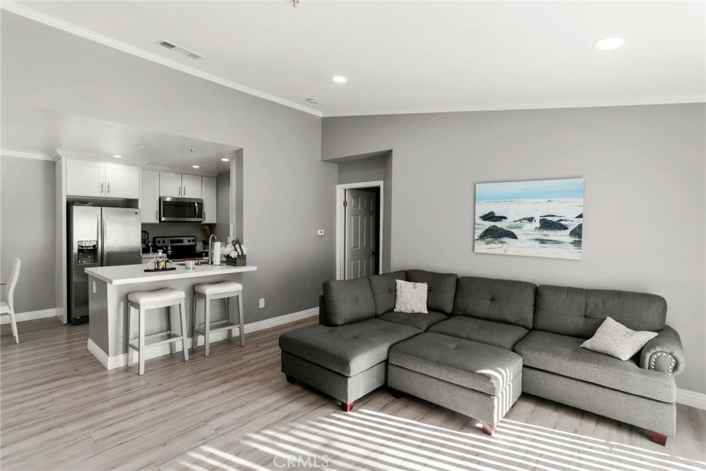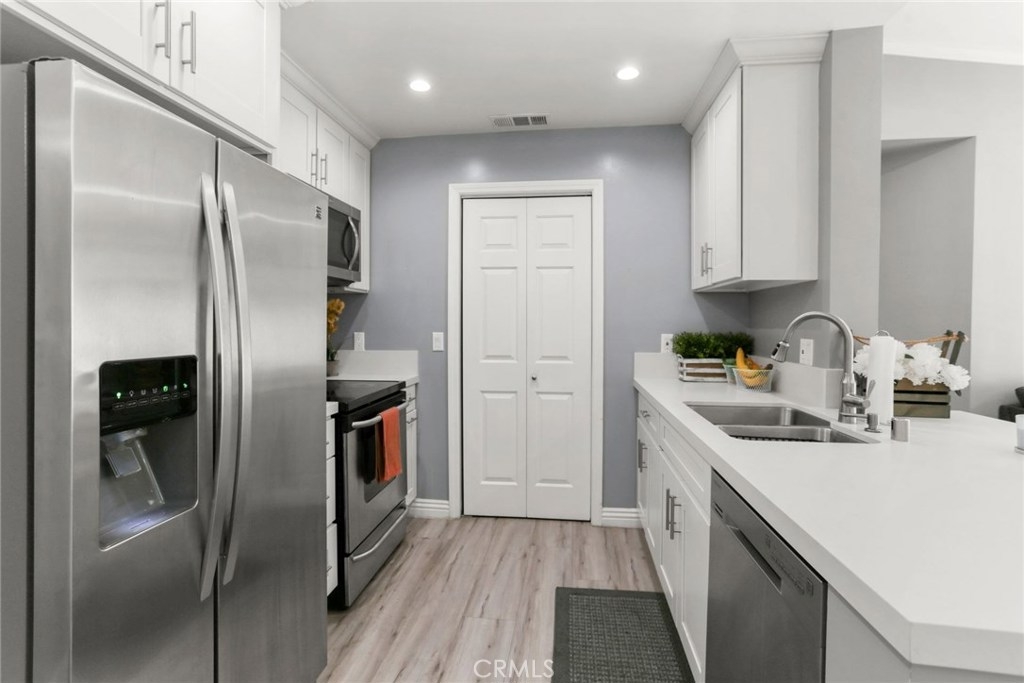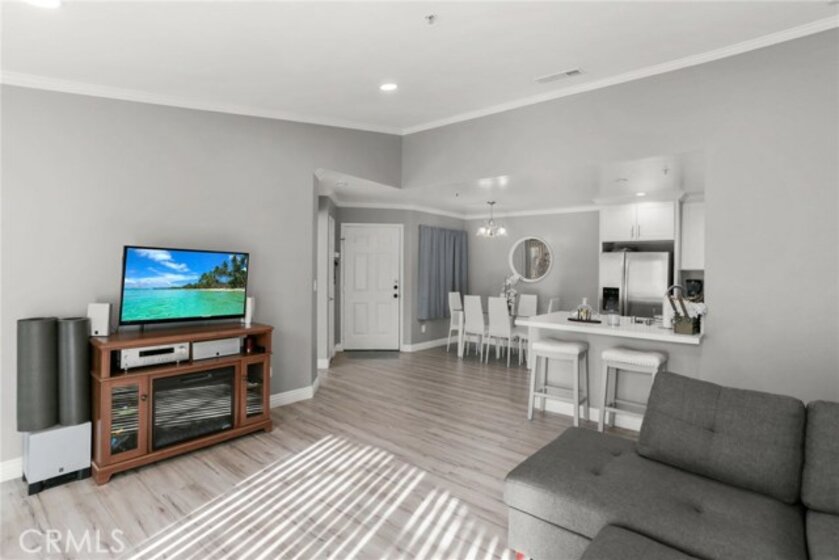 Beautiful and fully remodeled Condo located in the desirable Triana at Corona Ranch Gated Community! Situated at the top level, this unit features a spacious and bright open floor-plan with vaulted ceilings and recessed lighting throughout. This 2-bedroom 2 full bathroom home includes double master suites, each with a large walk in closet and private balconies. The kitchen has been fully remodeled with quartz countertops, stainless steel appliances, and opens up to the living area. The flooring was recently upgraded with modern 100% waterproof and scratch resistant laminate. Additional features include an inside laundry room next to the kitchen, an oversized 1 car garage with room for storage, an additional parking permit, and a large balcony off the living room that brings in plenty of natural light. The Association dues include multiple amenities and utilities such as the water, sewer, trash, insurance, community pool, spa, gym, bbq area, club house, exterior maintenance, pest control, and 24 hr gated patrol. This desirable community is located in a convenient area close to the 91/15 freeways, parks, highly rated schools, restaurants and shopping centers. Stop by today, this home will not last!