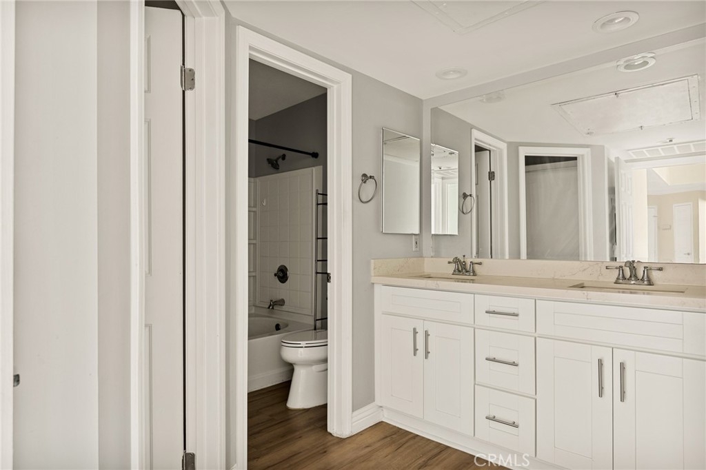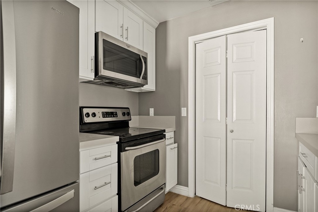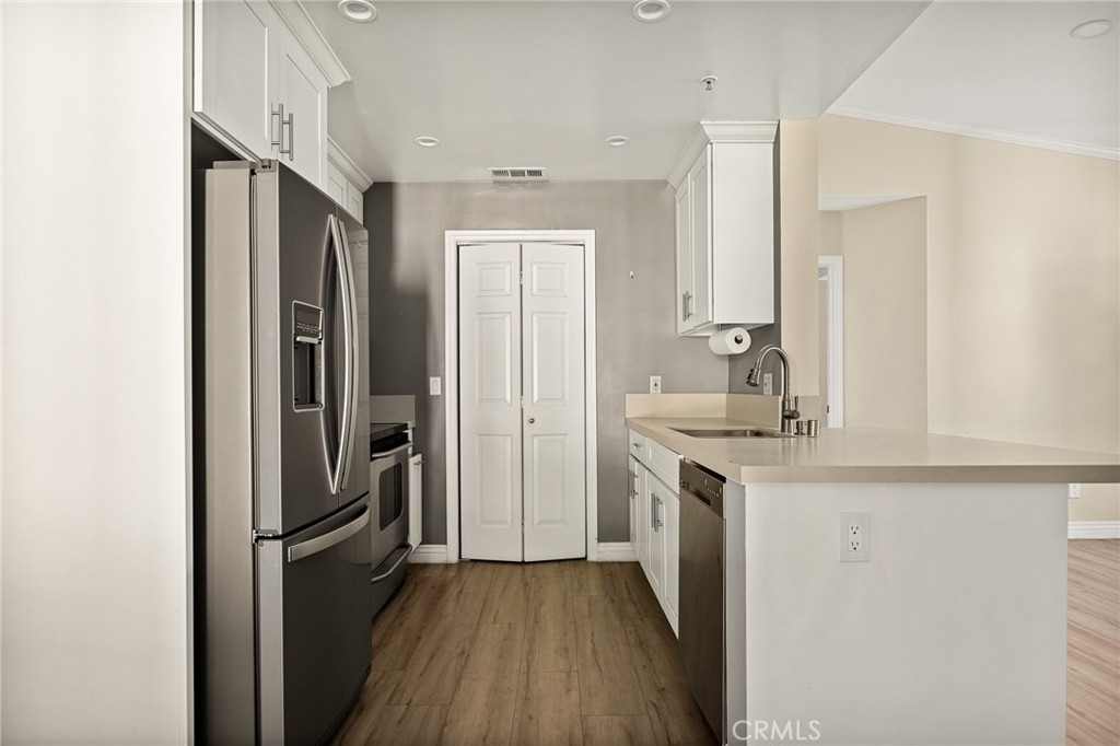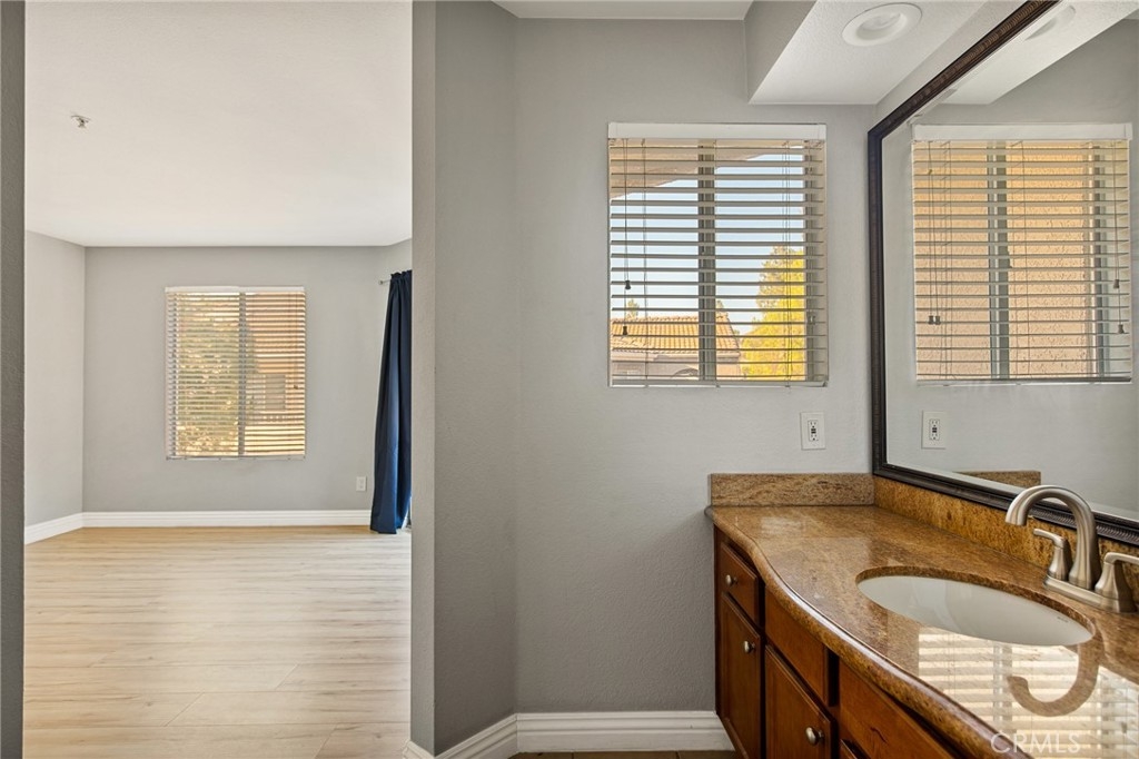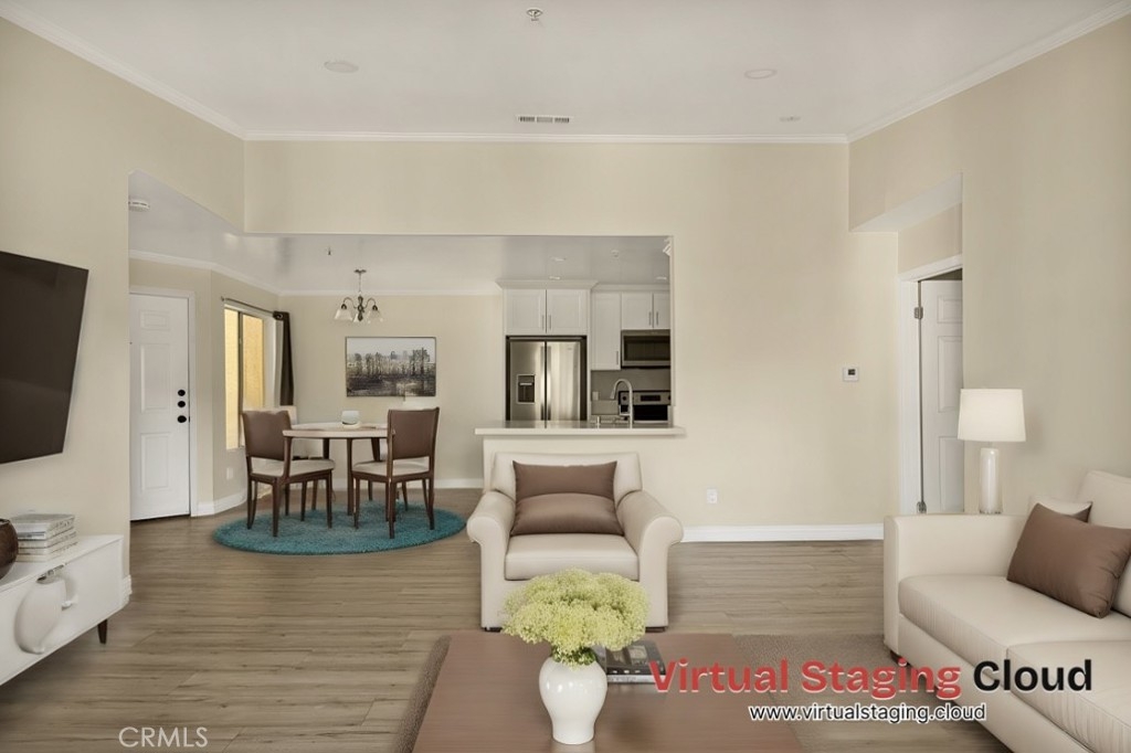 Welcome to this charming 2-bedroom, 2-bathroom condo nestled in a gated community in the city of Corona. Spanning 1063 square feet, this residence offers a modern and inviting atmosphere with laminate floors throughout, providing both elegance and easy maintenance. You are greeted by a spacious living area that seamlessly flows into a well-appointed kitchen, complete with sleek countertops and contemporary appliances. The open layout enhances the sense of space, making it ideal for entertaining guests or relaxing after a long day. Dual primary bedrooms are generously sized, offering comfortable retreats, while the bathrooms are designed for convenience and style, featuring modern fixtures and ample storage. Located in a secure gated community, residents enjoy peace of mind along with access to community amenities such as a pool, fitness center, and landscaped grounds. The condo also includes designated parking spaces for added convenience. Situated in Corona, this home offers proximity to local shops, dining options, and entertainment venues, ensuring you are never far from the vibrant city life while still enjoying the tranquility of a gated community. This condo presents an excellent opportunity for those seeking a modern living space in a desirable location. Don't miss your chance to make this stylish and comfortable condo your new home in Corona.