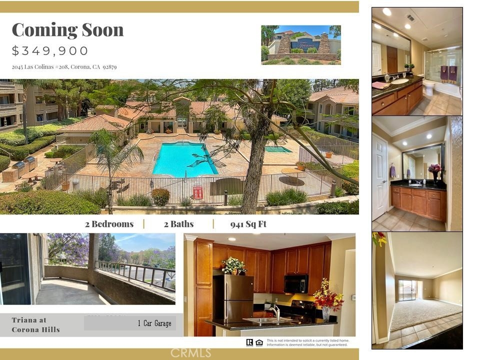 BACK ON THE MARKET.... AVAILABLE IMMEDIATELY ~ FABULOUS TWO BEDROOM CONDO, EACH BEDROOM HAS SEPARATE BALCONIES, LOCATED IN HIGHLY DESIRABLE TRIANA AT CORONA HILLS RANCH, A GATED COMMUNITY!! THIS SPACIOUS SECOND FLOOR UNIT FEATURES; TWO FULL BATHS WITH ~ NEWLY REFINISHED MASTER GARDEN TUB & NEWER TOILETS ~ NEW ENERGY SAVING LED LIGHTING FIXTURES THROUGHOUT ~ GRANITE COUNTER-TOPS IN KITCHEN & BATHROOMS ~ STAINLESS REFRIGERATOR ~ MICROWAVE OVEN ~ KITCHEN APPLIANCES ~ WASHER & DRYER INCLUDED ~ NEW WALL PLUGS & SWITCHES ~ NEW TWO-TONE PAINT ~ CROWN MOLDING IN FAMILY ROOM ~ NEW WINDOW BLINDS THROUGHOUT ~ TILE IN KITCHEN, HALLWAY & BATHS ~ NEW WALL TO WALL CARPET IN BEDROOMS AND FAMILY ROOM ~ BREAKFAST BAR AND DINING AREA ~ PATIO WITH STORAGE CLOSET ~ ONE CAR ENCLOSED GARAGE (FRESHLY REPAINTED) ~ NEWER AUTOMATIC GARAGE DOOR OPENER ~ WELL MAINTAINED COMMUNITY! TRIANA HOA PROVIDES GORGEOUS POOL, HOT TUBS, EXERCISE GYM, BBQ & CAR WASH AREA'S. HOA FEES INCLUDE WATER, TRASH & SEWER. GREAT LOCATION !!! CLOSE TO BEAUTIFUL LARGE PARKS OF CORONA WITH WALKING TRAILS, RESTAURANTS AND SHOPPING CENTERS (COSTCO, RANCH 99, WALMART). EASY ACCESS TO THE 91/15 FREEWAYS TO OC, RVSD & ONT AIRPORT. YOU WILL NOT BE DISAPPOINTED!! HURRY ON THIS ONE... IT WILL NOT LAST LONG!