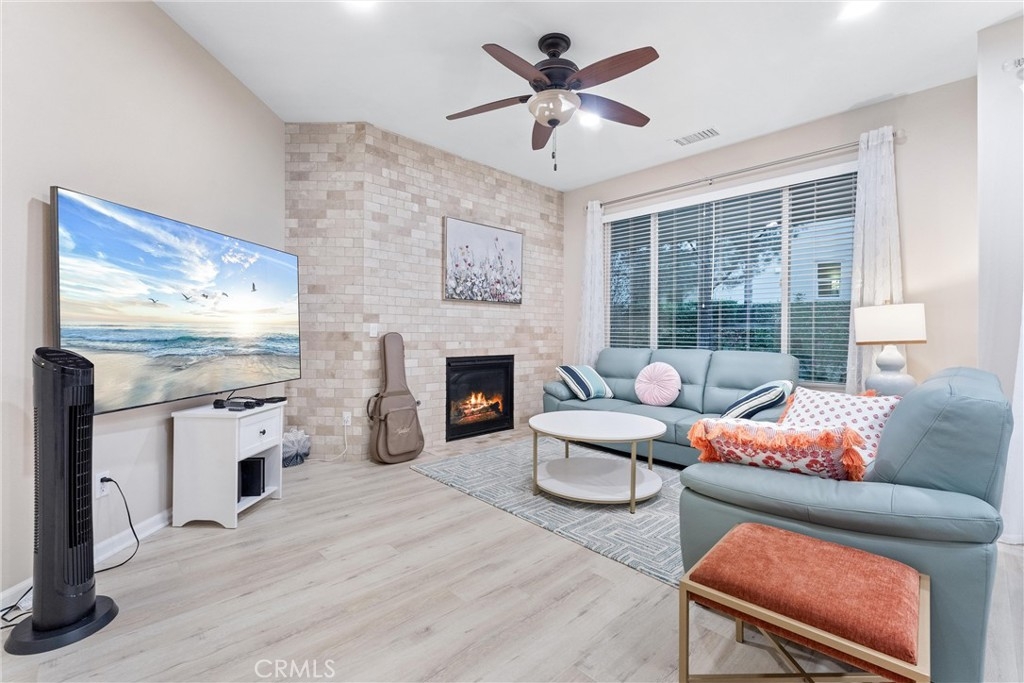 Live the Dream in Trilogy at Glen Ivy! Welcome to your charming retreat, where senior living meets luxury and comfort. Act quick for this highly sought after floorplan! These come on the market very rarely. This beautiful condo is your gateway to an exceptional 55+ lifestyle at Trilogy at Glen Ivy! Settled in the rolling hills, with close proximity to the Cleveland National Forest, community offers stunning scenery & endless possibilities. Step inside your new oasis & discover: Spacious comfort: Enjoy 1597 sqft of comfortable living with an open kitchen and living room, perfect for entertaining and relaxation. Large living room with a warm fireplace to overlook your private landscaped and HOA maintained backyard. Trilogy at Glen Ivy is a vibrant community overflowing with amenities, including: 18 hole golf course - Manicured fairways and undulating greens are met with a variety of elevation changes and stunning backcountry views. The unique Southern California design provides a challenge for the most experienced of golfers and variable options for those just beginning. (Membership Required) Clubhouse - A hub for social gatherings and events State-of-the-art gym - Maintain your fitness goals Walking track - Enjoy the outdoors at your own pace Barbecue areas - Perfect for hosting cookouts with friends and neighbors Tennis and bocce ball courts - Friendly competition and camaraderie Indoor and outdoor pools - Relax and unwind in style Massive hot tub - Perfect for that mountain serenity and those achy muscles Walking/biking trails - Explore the community and surrounding nature Library - Curl up with a good book Art studios - Pursue your creative side 80 Different Activities & Clubs and much much! Beyond the community, you'll find a prime location close to shopping, restaurants, and the famed Glen Ivy Hot Springs. This condo offers the perfect blend of active living, social connection, and serene surroundings. Discover the epitome of community with more than 55 senior and a Trilogy at Glen Ivy, where every day is a celebration of leisure, luxury, and the beauty of nature. Schedule your private tour today and make this your forever home!
