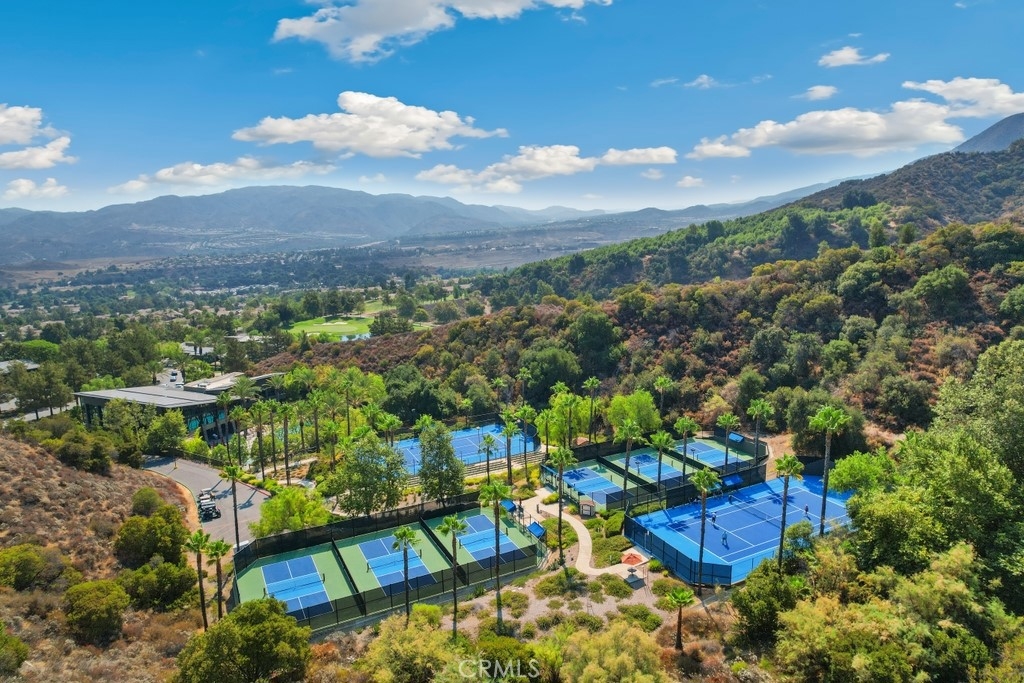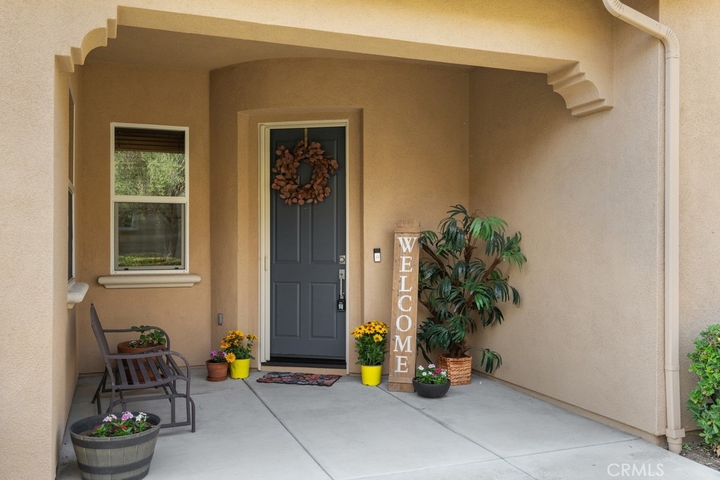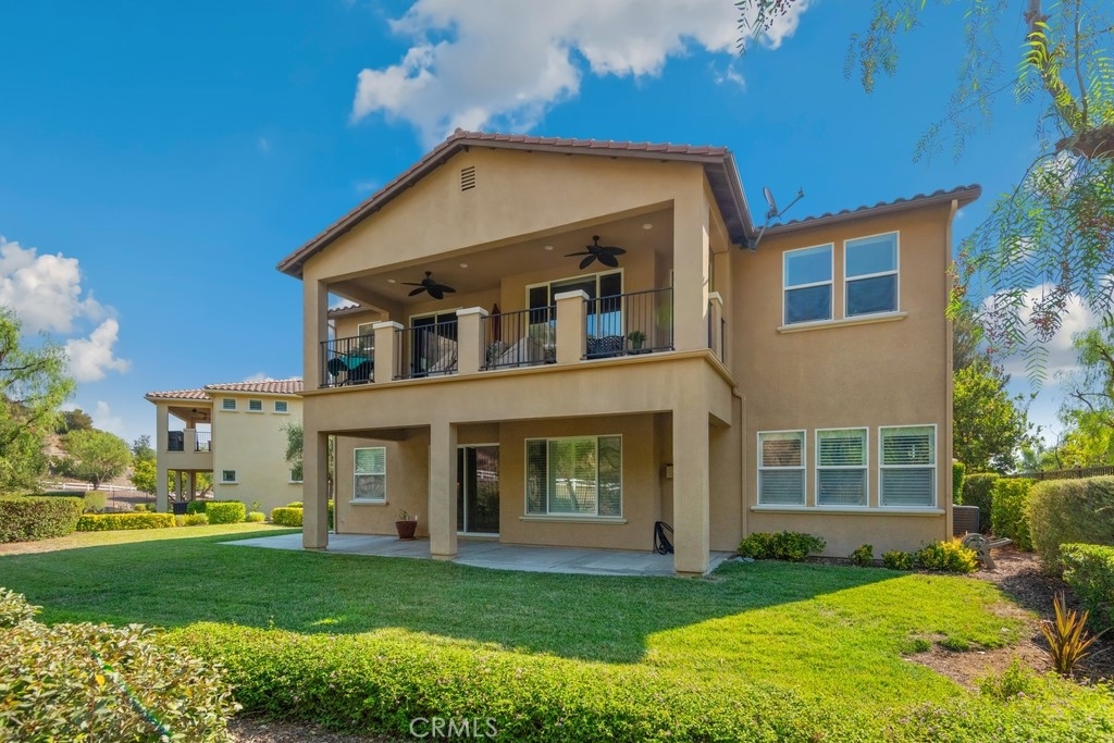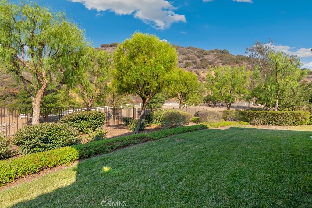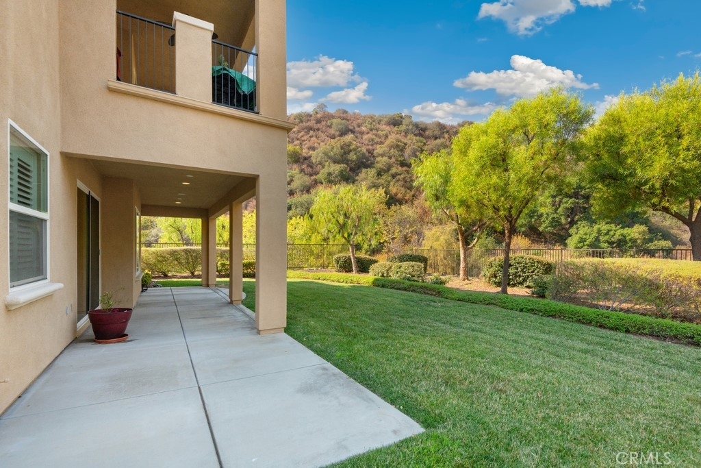 Gorgeous 2 bed, 2 bath condo located in the highly desirable 55+ gated community Trilogy at Glen Ivy! This stunning home is nestled up against the foothills, with no rear neighbors, offering fantastic panoramic views, with lots of seclusion and privacy - it is the most coveted lot in Cobblestone Canyon and this is one of the largest lot in the community! The interior is open and spacious with plantations shutters, recessed lights, tile and carpet floors. The formal rotunda entry opens to the spacious great room with fireplace, there is a slider to the backyard, a dining area, and the stunning kitchen features a large center island with granite counters, matching backsplash, and stainless steel appliances with brand new dishwasher and microwave. The bedrooms offer lots of privacy and sit on either side of the home. The large primary suite has a private bathroom with dual sink vanity, and full-size walk-in shower. There is also a bonus room that could be used as an office or work out area that sits between the entry and the secondary bedroom. A hall bathroom and an in-unit laundry room complete the floor plan. Enjoy the park-like backyard with covered patio, lush landscaping, with well kept grass and phenomenal foothill views - this is the perfect space for entertaining guests! This home also offers an attached 2-Car Tandem Garage, and resident's get to enjoy an array of Resort-like amenities including banquet facilities, club house, rec room, fitness center, golf course, pool, spa, pickleball and tennis courts, plus many community events. Schedule your private tour today and do not miss out on this gem!
